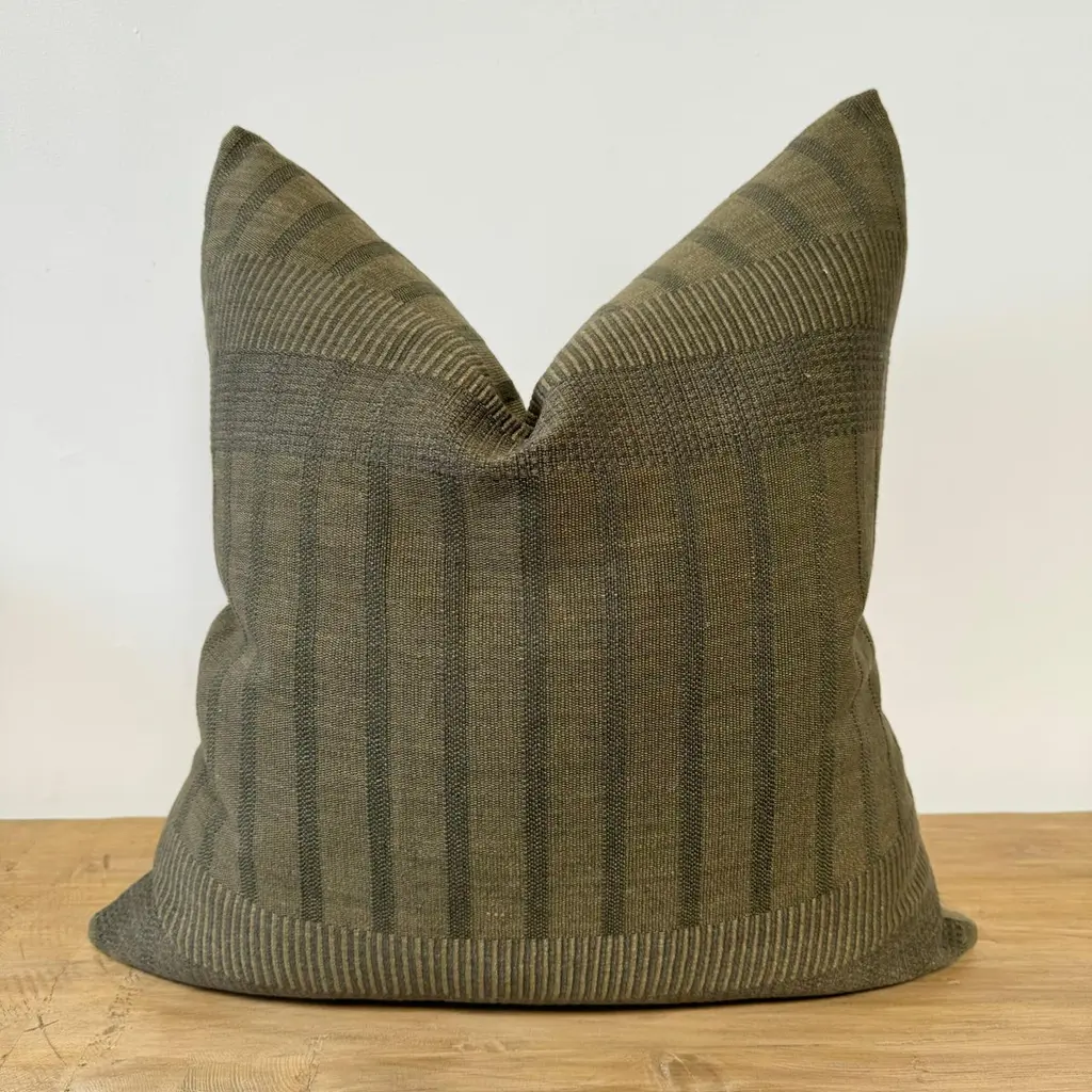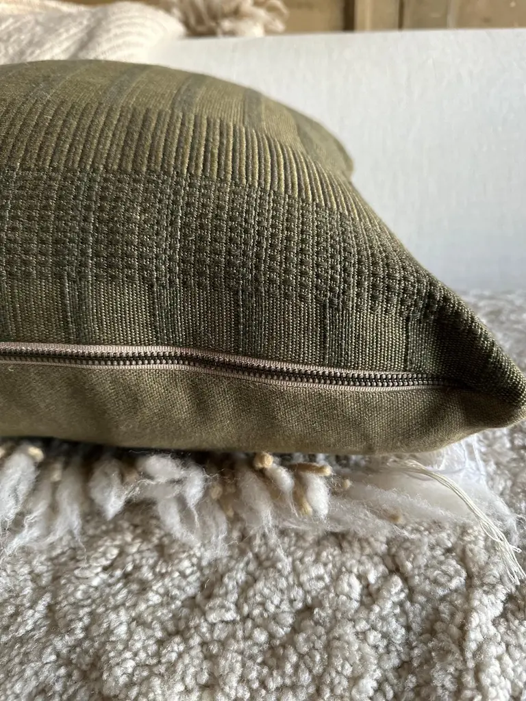 ZAK + FOX linen cotton blend Vagabond in oliveSize: 22x22Antique brass zipper closureoverlocked stitched edgescolor: olive greenThis is a handcrafted textile. Minor irregularities are inherent to the weave and are a hallmark of its craftsmanship.CARE ; machine washable up to 30°C, for best results we recommend dry cleaningMARTINDALE 28,000