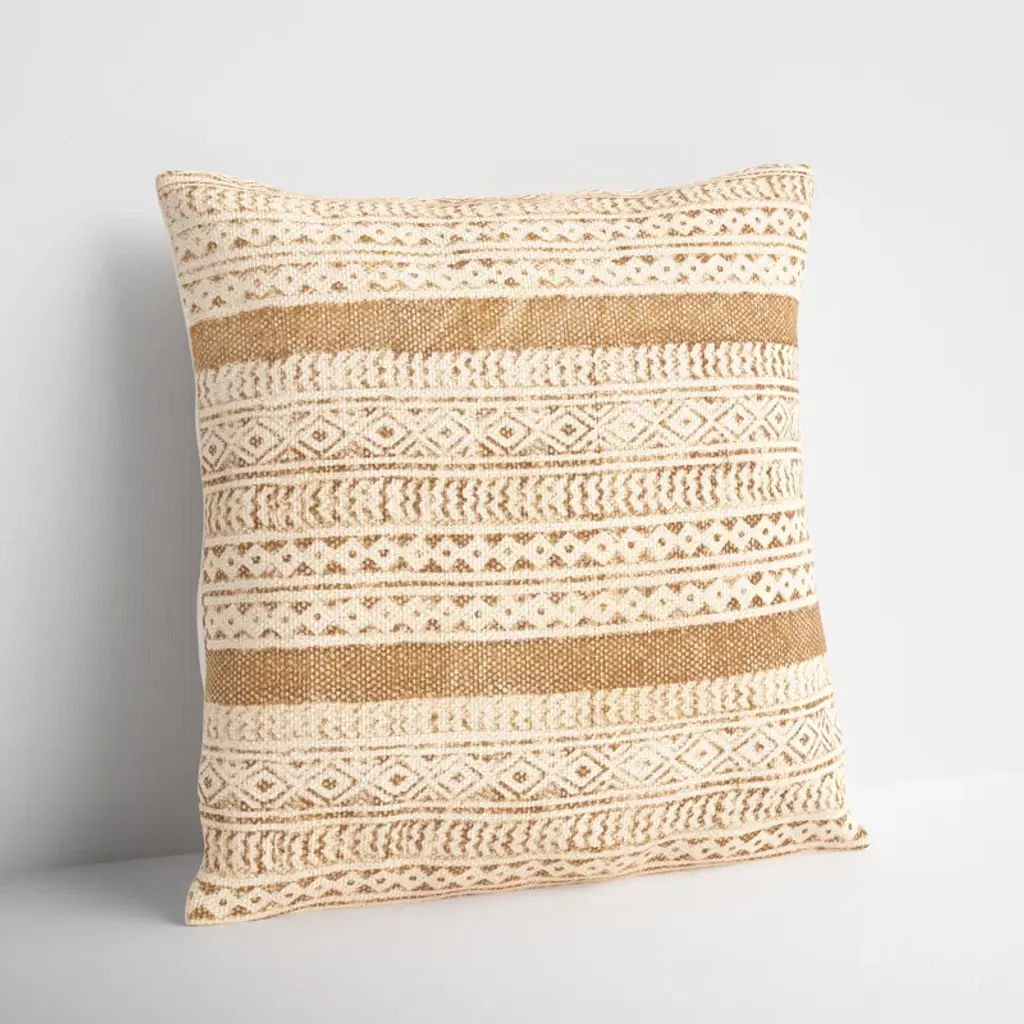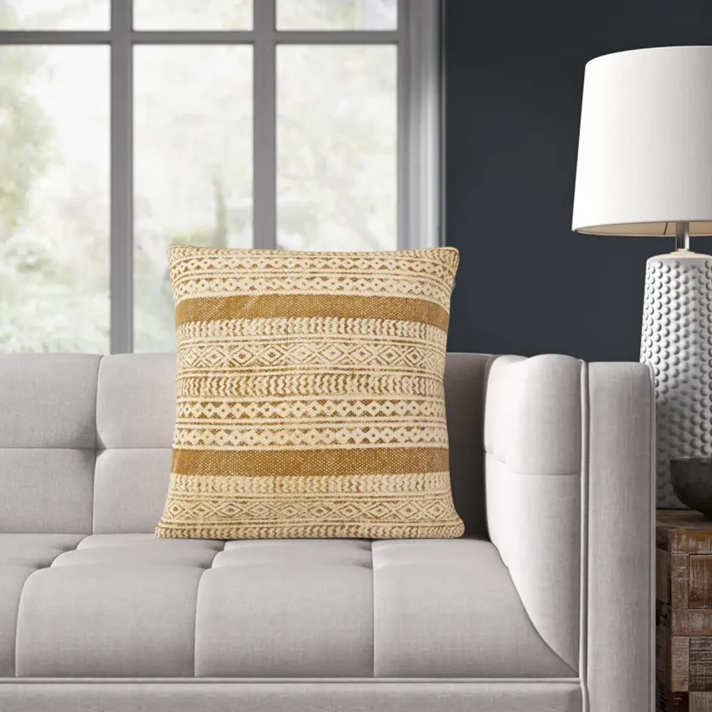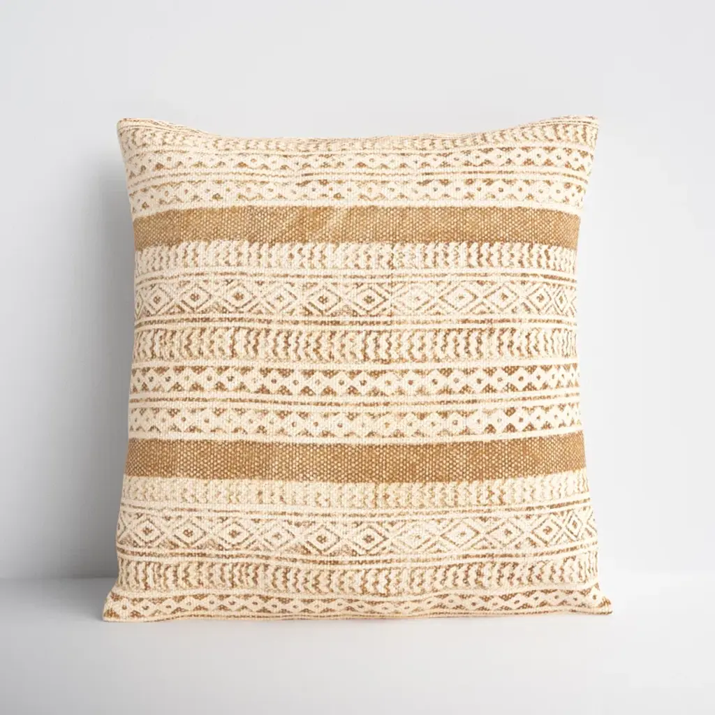 This square toss pillow adds a fresh, earthy vibe to your space with its geometric print. It's woven from 100% cotton, and it features a zipper closure for easy cleaning. We love how its neutral color scheme and knife edging make this piece work with both bold prints and subtle solids. Plus, this pillow cover comes with your choice of size and insert material (if any) to suit your space.