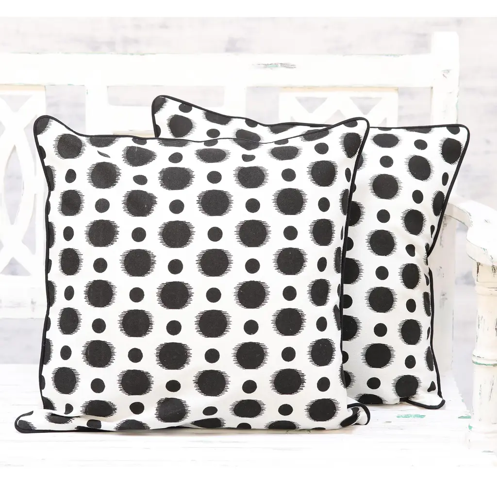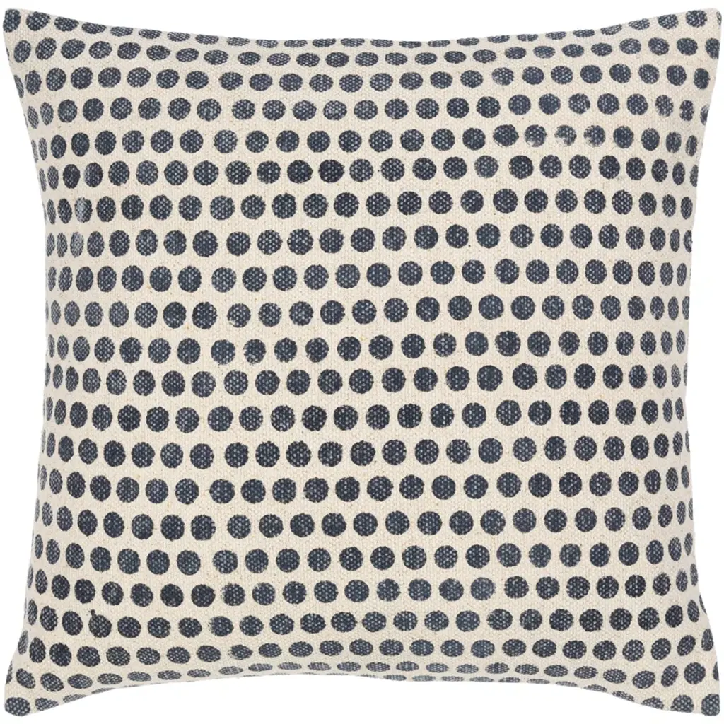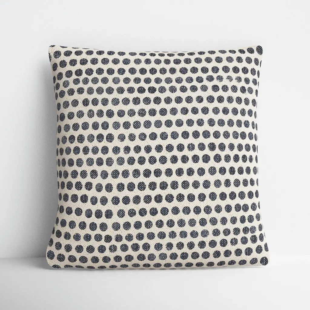 Pattern contrast. This cotton pillow features a polka dot print on a light beige base, delivering a crisp, modern accent. The 100% cotton cover adds breathable softness, while the knife-edge finish sharpens the silhouette. Its structured form holds shape and layers easily with solids or stripes. Machine-washable for easy care. Your choice of insert or cover only.