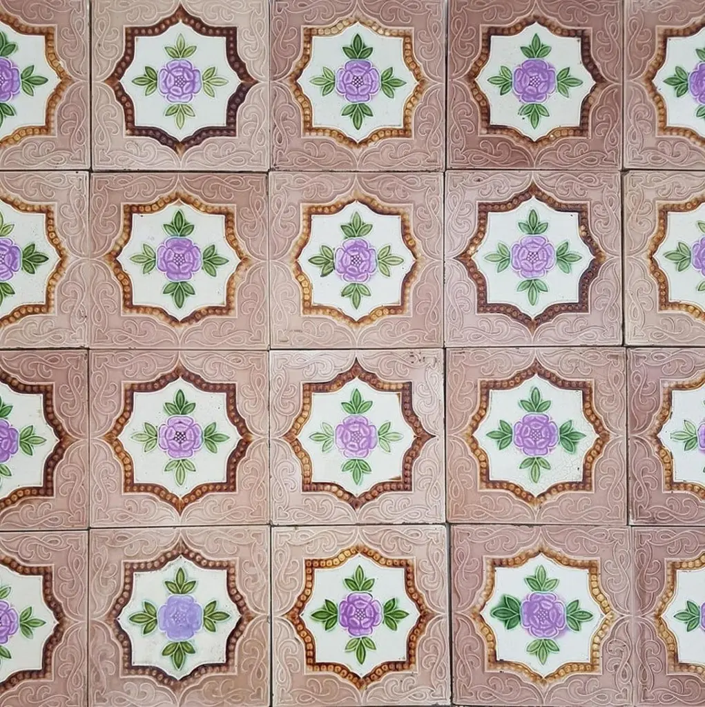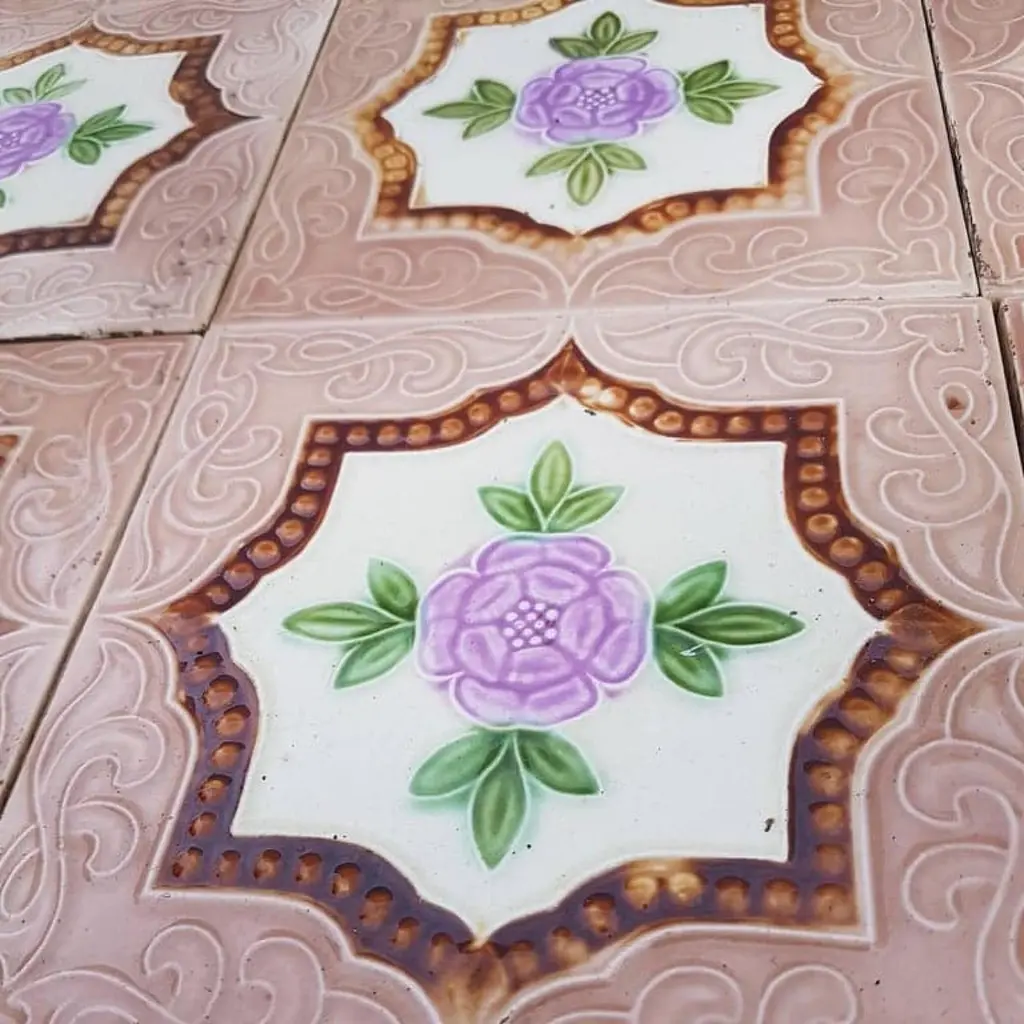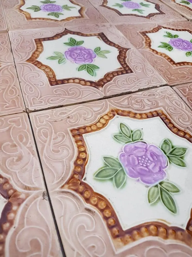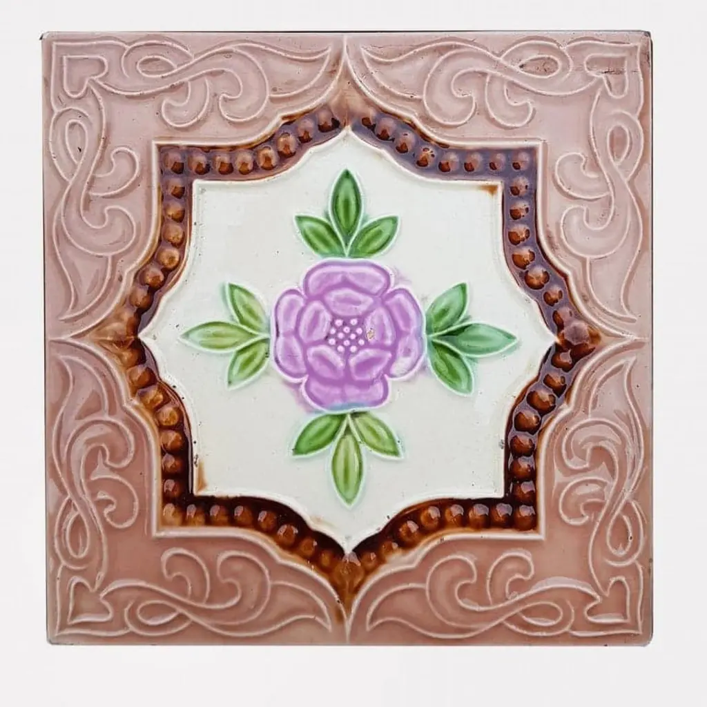 This is an amazing set of antique Art Deco handmade tiles. A beautiful relief and color. These tiles would be charming displayed on easels, framed or incorporated into a custom tile design.Please note that the price is for one piece. We sell them as set but also individually.Size each tile: 6.02 inches (15.3 cm) width x 6.02 inches (15.3 cm) height x 0.35 inches (0.9 cm),Condition is generally very good. Minor chips, scuffs, color different and wear associated with age. A little crazing to the glaze is part of the design.There can be slight variations in each tile's size because of their age and craftsmanship.