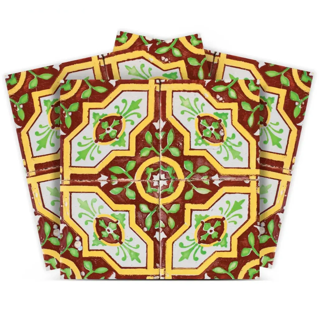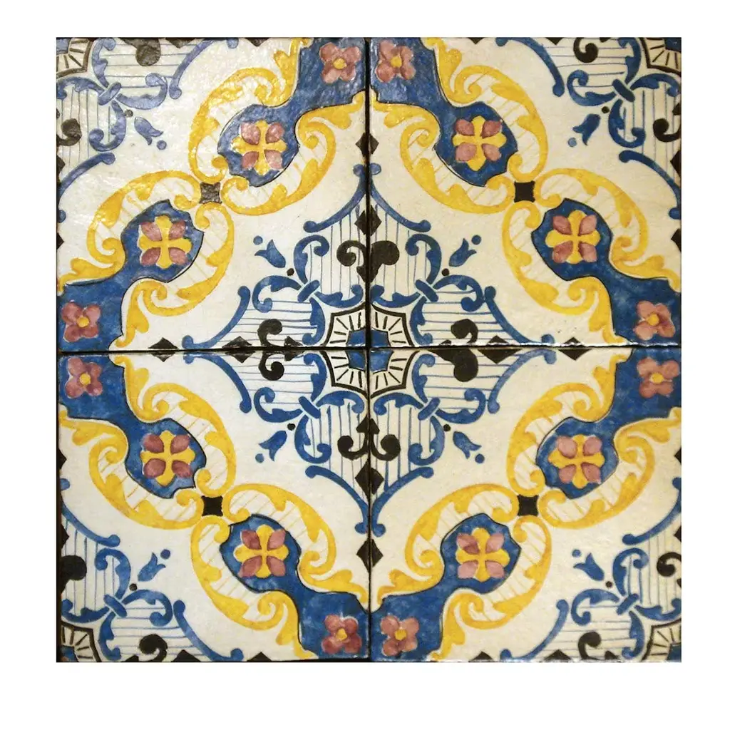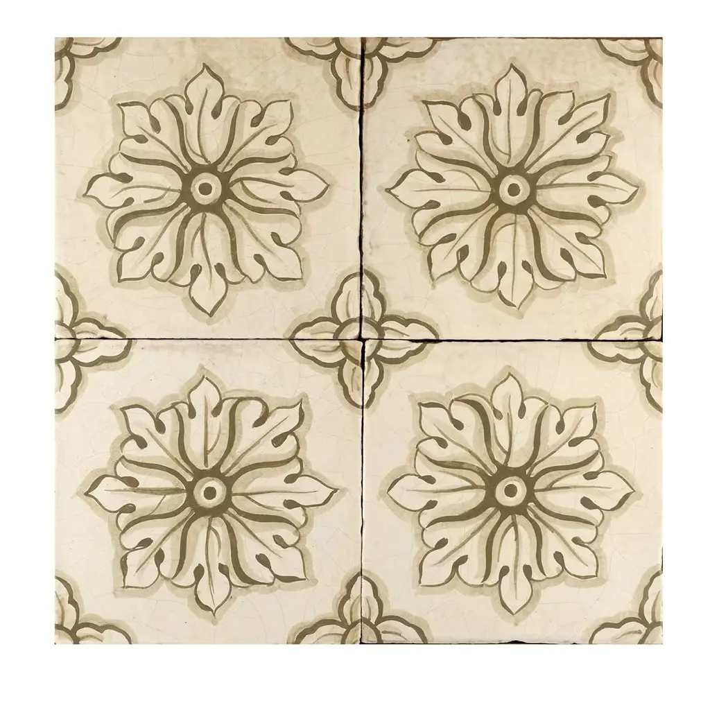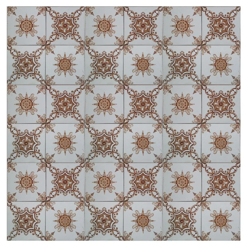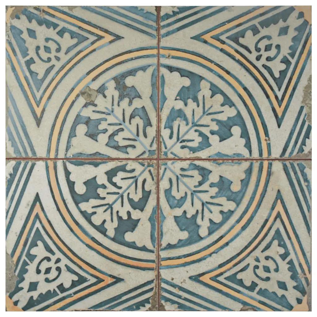 1 of the 30 handmade antique tiles in rich brown and green glazed colors. Manufactured around 1920 by Gilliot Hemiksem, Belgium. One tile is divided in four squares, two brown and two relief green. These tiles would be charming displayed on easels, framed or incorporated into a custom tile design. We also offer boarder tiles that would suit the tiles perfectly. Please ask for possibilities.Please notice that the price is for one tile. We have 30 tiles available.Size each tile: 5.9 in (15 cm) width x 5.9 in (15 cm) height x 0.39 in (1 cm) thick.Condition is generally very good. Minor chips, scuffs and wear associated with age. Some crazing to the glaze is part of the design. There can be slight variations in each tile's size because of their age and craftsmanship.