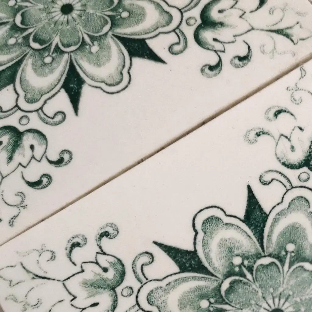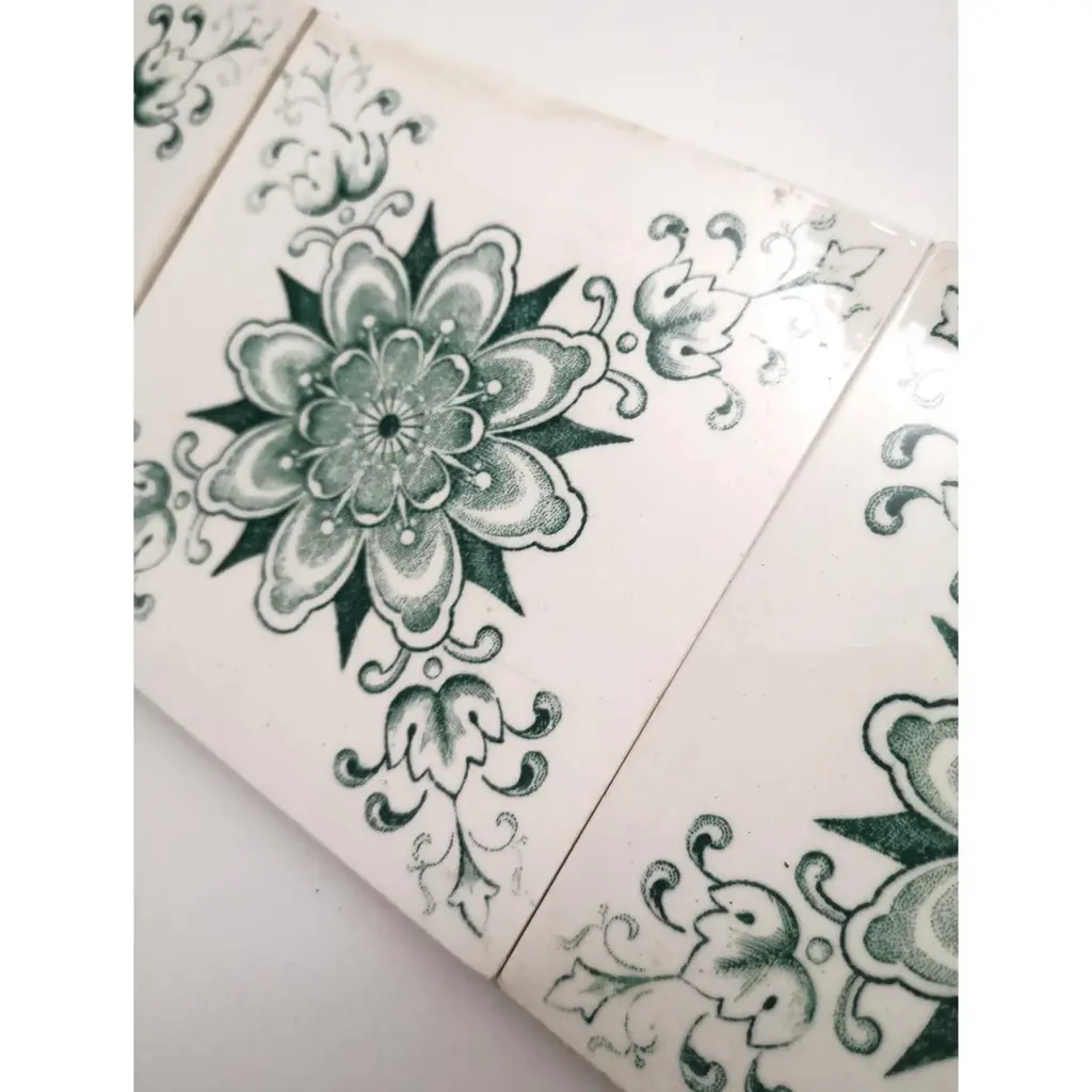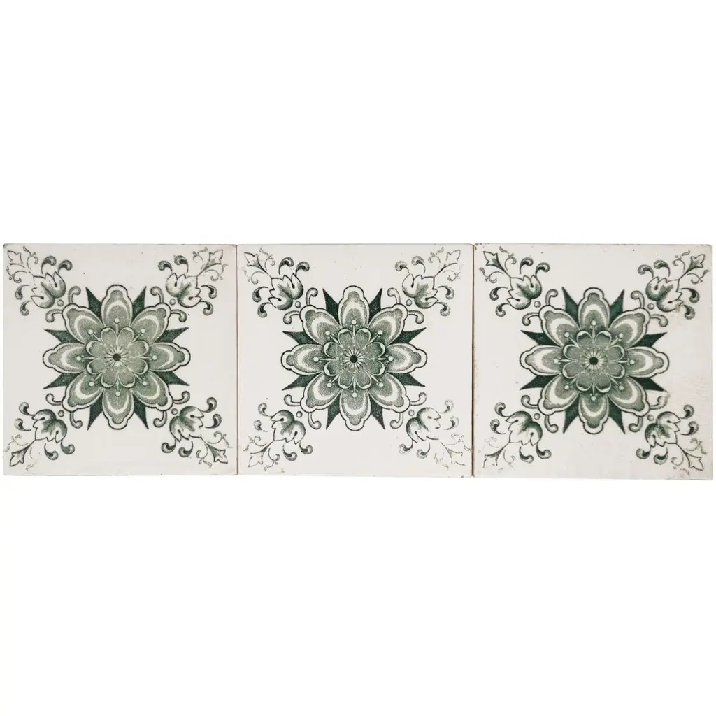 1 of the 30 pcs. exceptional antique wall tiles, manufactured circa 1945, Le Claive Belgium. The dimensions per tile are 4.7 inch (12 cm) × 4.7 inch (12 cm).Please note that the piece is for one piece! Condition is generally very good. Minor chips, scuffs, color different and wear associated with age. Some crazing to the glaze is part of the historical design.