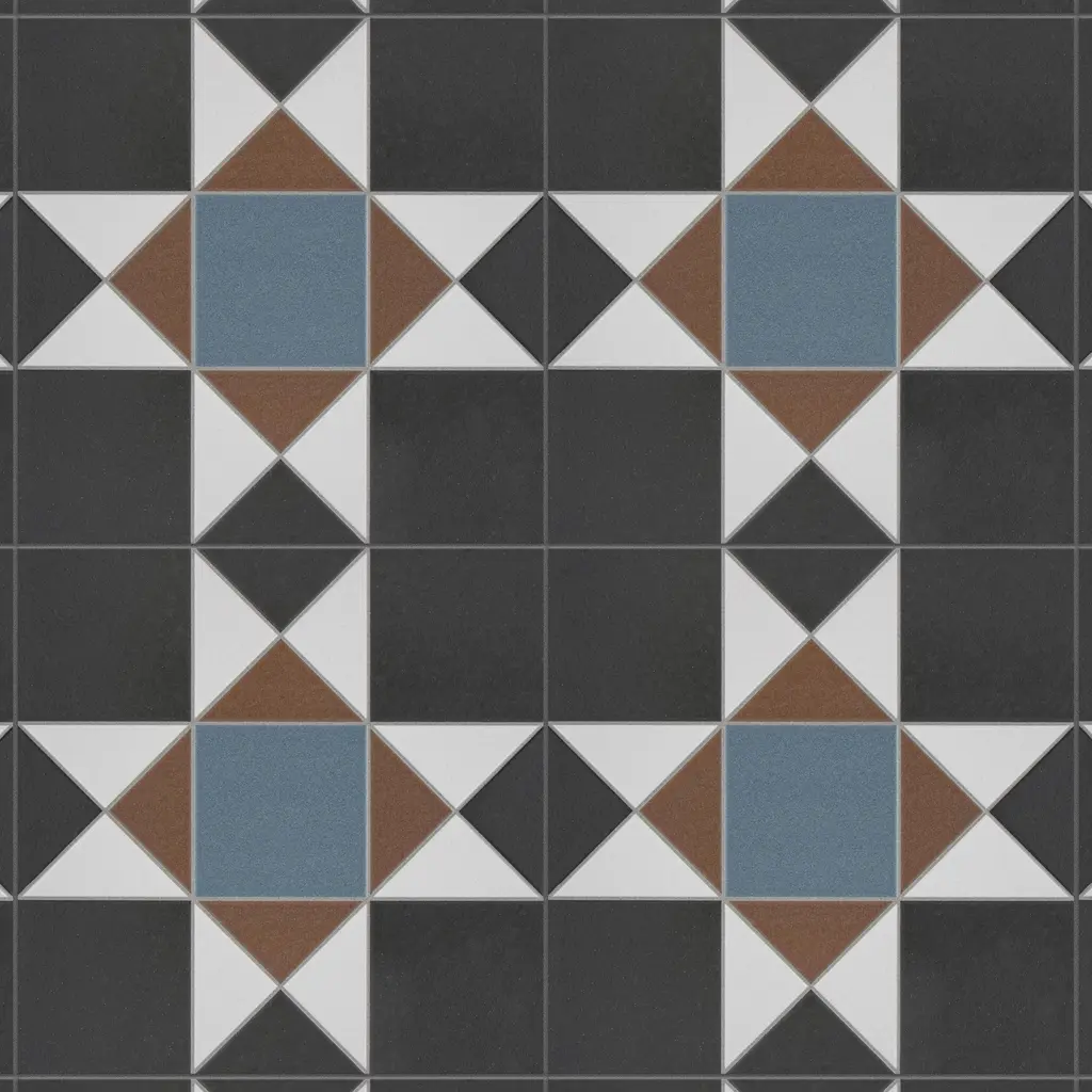 A true masterpiece of the Sicilian craftsmanship tradition, this unique set of 25 cement tiles is entirely handcrafted using 20th-century methods. Made of a blend of natural raw materials such as cement, marble sand, and Etna's lava sand, it flaunts a clean geometric pattern boasting a dark gray background enriched with two opposite white corners.