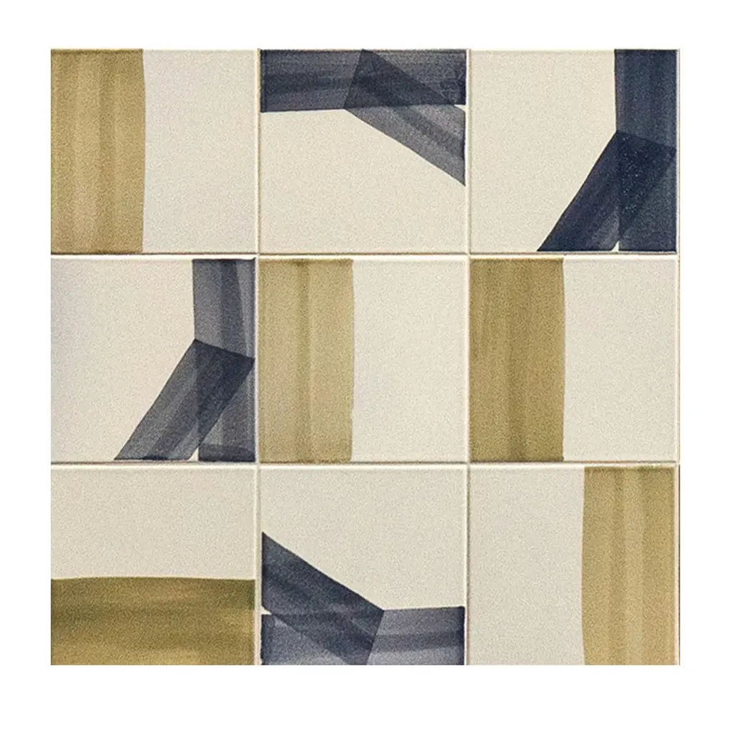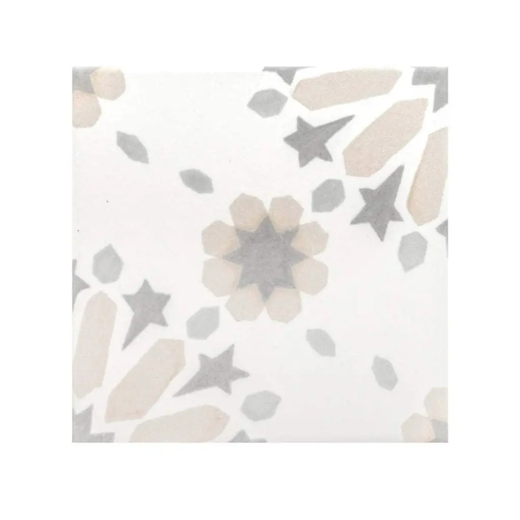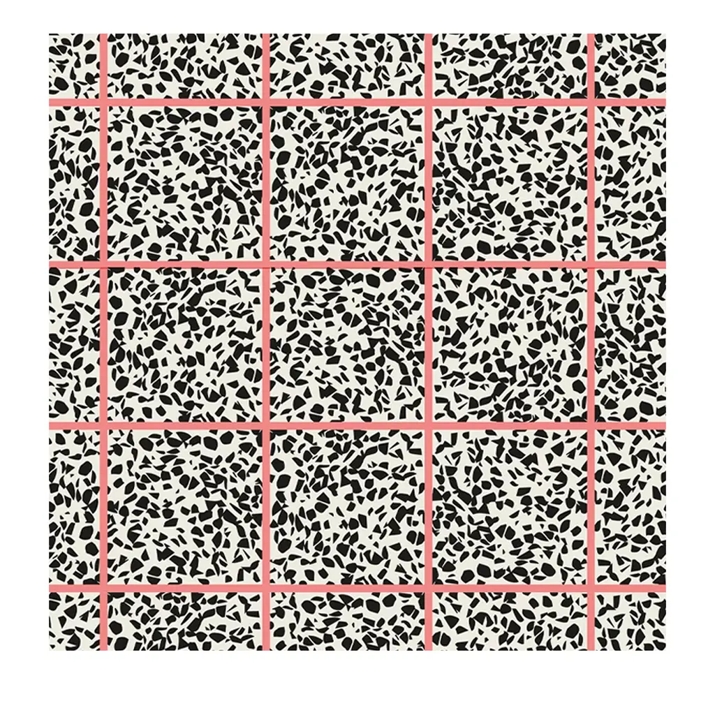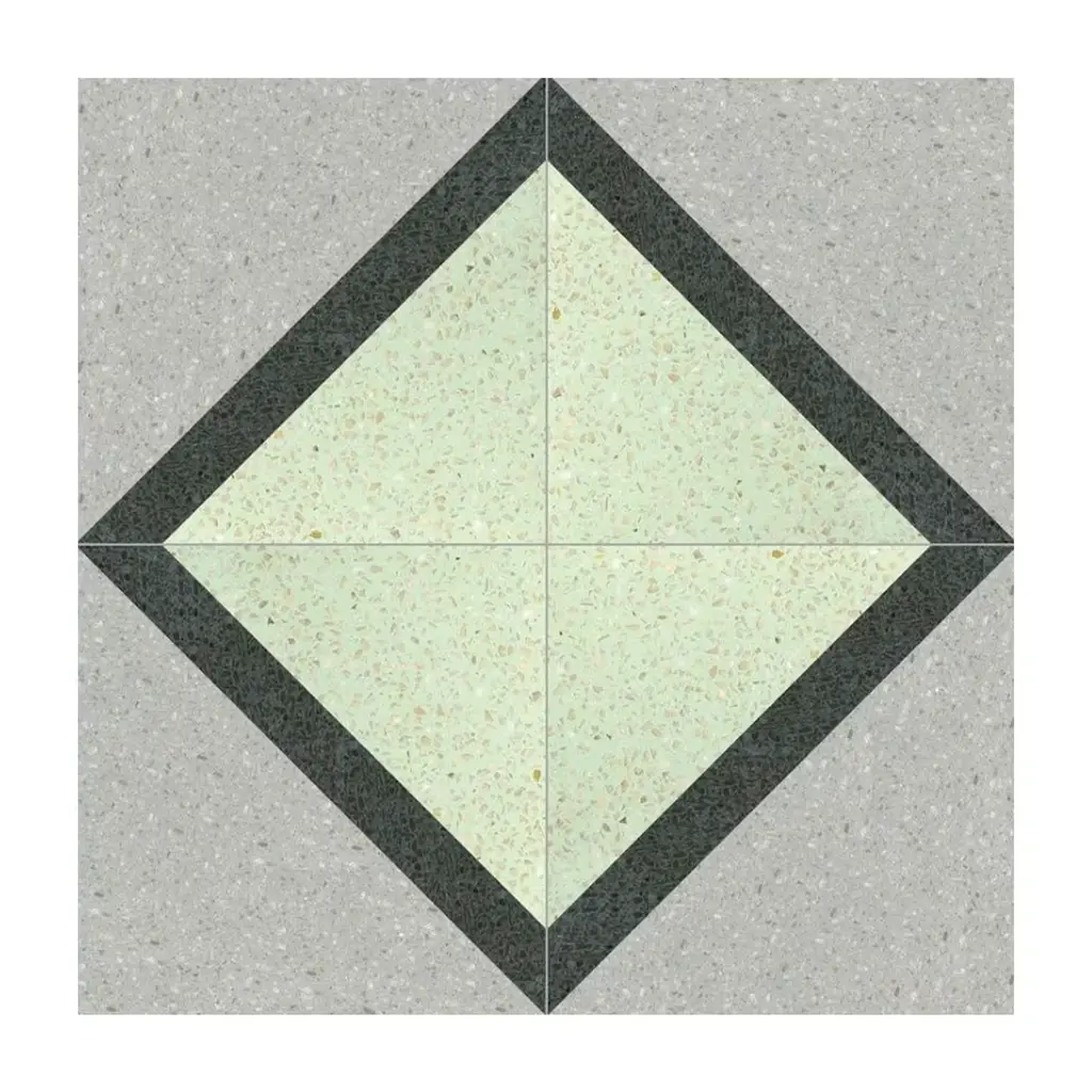 A meticulous blend of natural raw materials such as cement, marble chips, and volcanic sand from Etna, this set of 25 terrazzo tiles is a deft showcase of craftsmanship. Handmade in Romano's Sicilian workshop following traditional techniques, each tile is hand-decorated showcasing a geometric motif of green, gray, and antique pink squared shapes juxtaposed to a pearl-white backdrop.