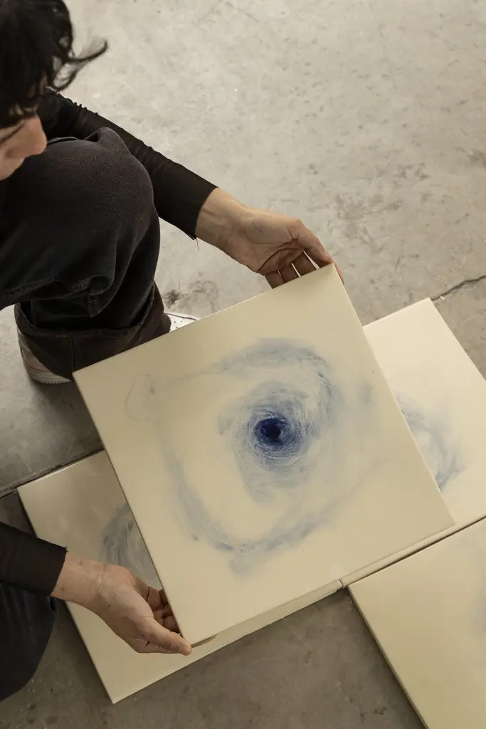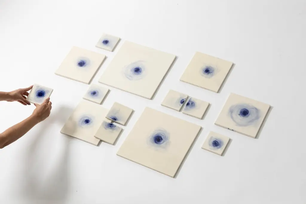 Aura, a mural of a gentle, profound and peaceful nature painted by Mexican artist José Miguel Gómez in different sized ceramic mosaics. Each piece represents a different state of mind of the inhalations and exhalations stemming from the artist’s meditation. Aura mural tiles are each individually hand painted and suited for interior and exterior use. Each square meter of tiles offers an array of different sized tiles, carefully selected by the artist making each Aura Mural unique.-Tiles are sold by square meter. One or several square meters can be purchased.- Tile sizes vary from 10 sq cm, 15.2 sq cm, 20.5 sq cm, and 30.5 sq cm.- Tile mural is not mounted on a surface, customer will install on a surface as theysee fit: either with help of a tile expert, attached with Velcro, mounted on awooden surface or frame.Art: José Miguel Gómez.