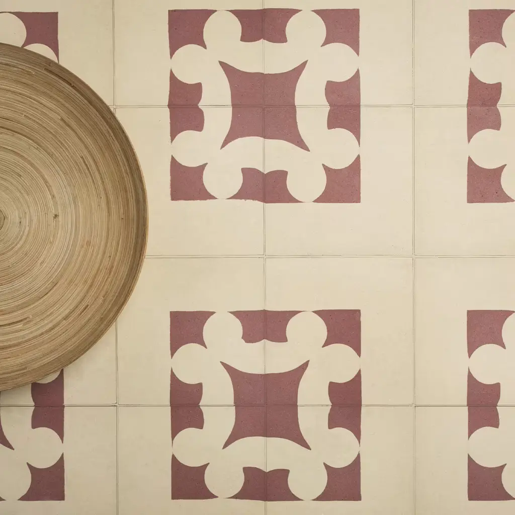 This exquisite set of 25 cement tiles embodies the perfect harmony between traditional craftsmanship and modern allure. Effortlessly adorning the floor or wall of any style of decor, it boasts a red geometric composition on a white background, masterfully handcrafted of a blend of natural raw materials such as cement, marble sand, and Etna's lava sand, using traditional, Sicilian crafting techniques.