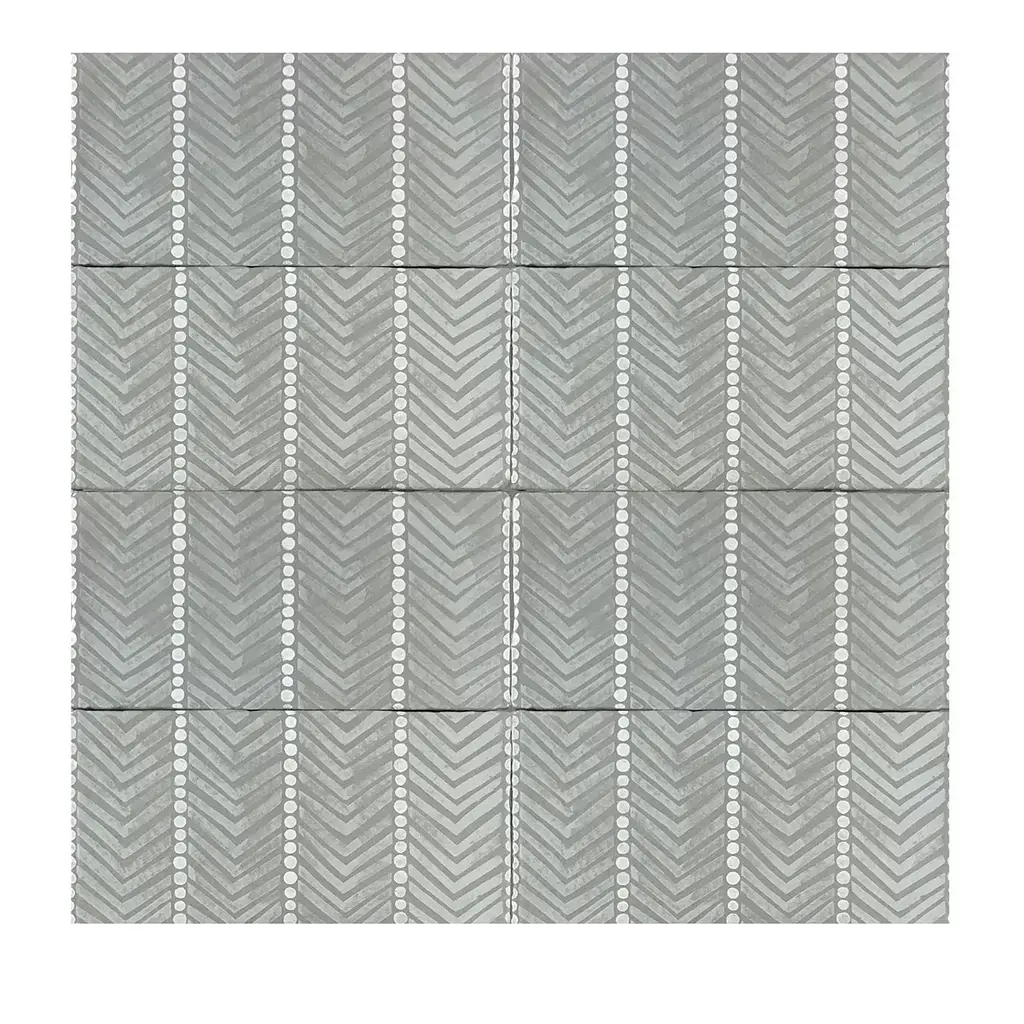 Decorated by hand with a stylized geometric motif on a matte blue backdrop shade, this exquisite set of 50 cotto tiles exudes timeless character and sophistication. Each rectangular tile measures 20 x 10 x 1.3 cm (LxWxH). Available in other motifs and colors, as well as other set combinations, please consult the Artemest catalog for options.