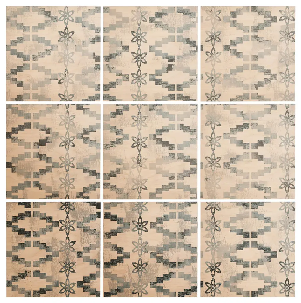 Decorated by hand with a stylized geometric motif on a matte blue backdrop shade, this elegant set of 50 cotto tiles merges tradition with timeless character. Each rectangular tile measures 20 x 10 x 1.3 cm (LxWxH). Available in other motifs and colors, as well as other set combinations, please consult the Artemest catalog for options.