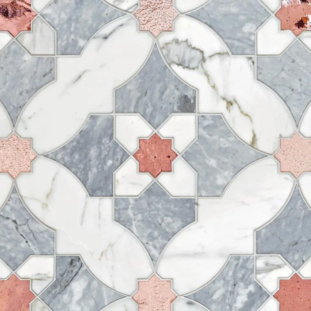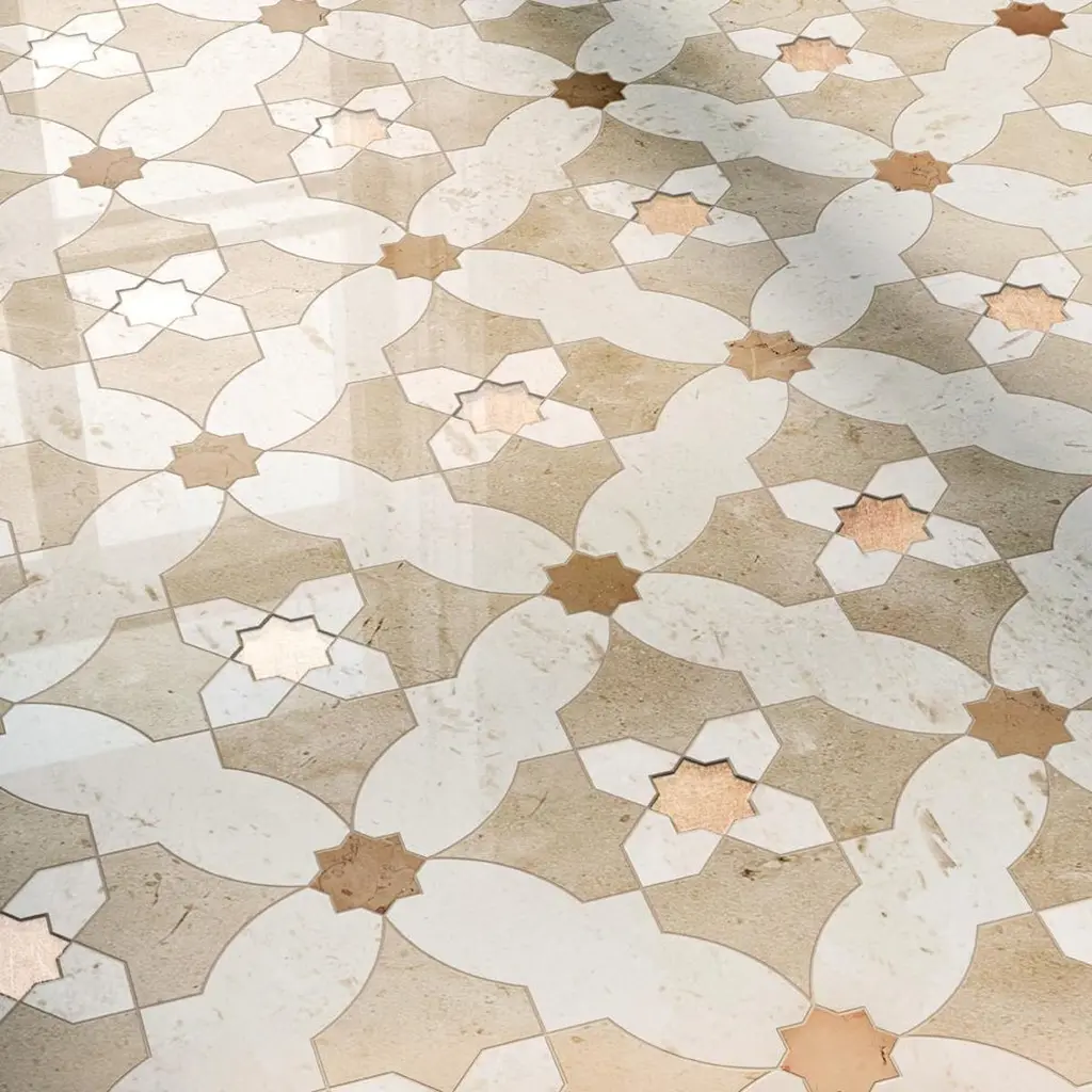 Floor Waterjet Cut Marble Tiles Available In Different Marbles Combination