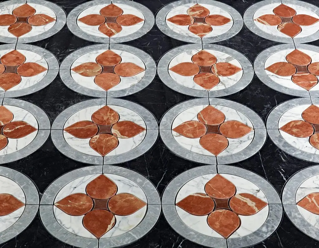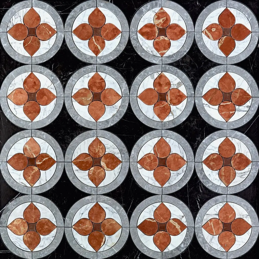 Floor Waterjet Cut Marble Tiles Available In Different Marbles Combination