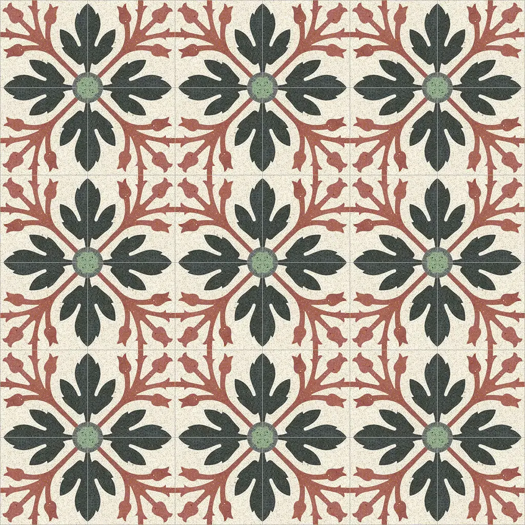An elegant and mesmerizing combination of lines inspired by the unique shapes of nature, this set of 25 terrazzo tiles will make a sophisticated and original accent to any traditional or modern interior. A deft showcase of craftsmanship from Romano's artisans, each tile is made using a blend of natural raw materials, namely cement, marble chips, and volcanic sand from Etna.