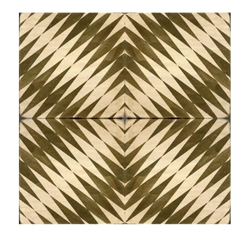 Minimalist design and meticulous detailing distinguish this majolica tile from the Natura Collection. Handmade and hand-painted by skilled artisans, these tiles are characterized by an elongated diamond-shaped design in ivory set against a lilac background. The tile has a distinctive, sideways-V shaped orientation, imbuing a sense of dynamic energy and movement to a wall, floor, or surface. Tiles must be applied without visible grouting to ensure design continuity.