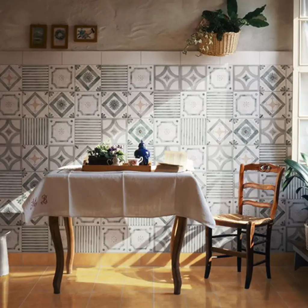 This one-of-kind set of 24 square ceramic tiles captures the effortless elegance of simple traditional patterns revealed through a deft artisan process. Apt exclusively as wall covering, this azure version can be combined with many other color options available in the Artemest catalog for a lively puzzle of colors sure to elevate any home or restaurant.