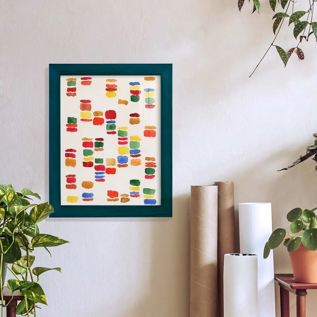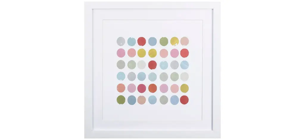 Alessandro Mendini was one of Italy's most important Postmodernist designers and architects. This hand-painted set of 25 tiles (1 sqm) was created in July 2018. Its minimalist design features a series of multi-colored dots in a clean-styled series of columns and rows, for an effect that is both simple yet visually complex. Each tile measures 20 x 20 cm.