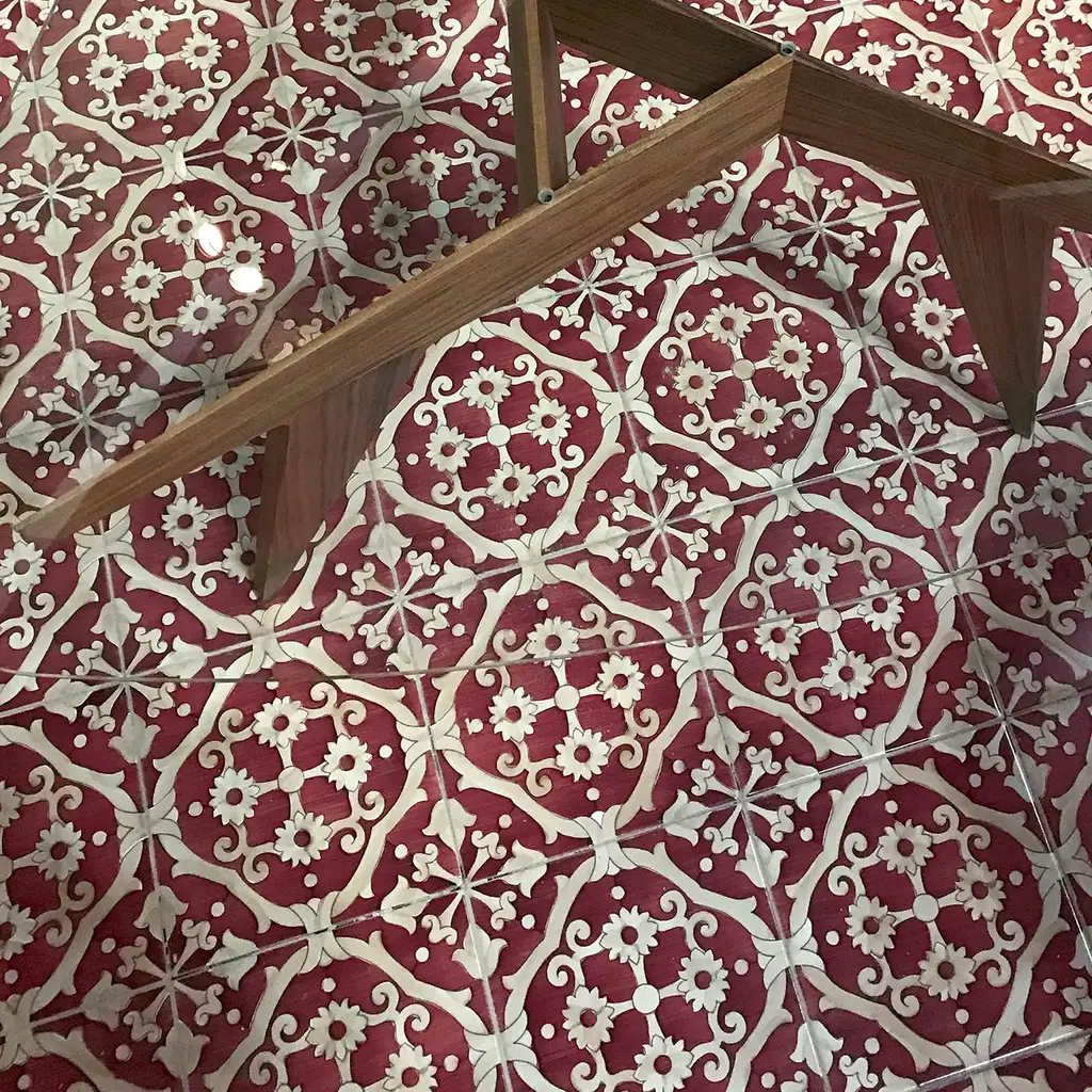 Inspired by the historic village of Tovere on Italy's Amalfi Coast, this set of 25 tiles (1 sqm) features an abstract motif in rich red and tobacco brown, whose high-quality "Bianco Vietri" glaze gives the impression of flowers shimmering under the moonlight. Made in one of Italy's most famed ceramics-making towns by a family-run company with over five centuries of experience. Each tile measures 20 x 20 cm.