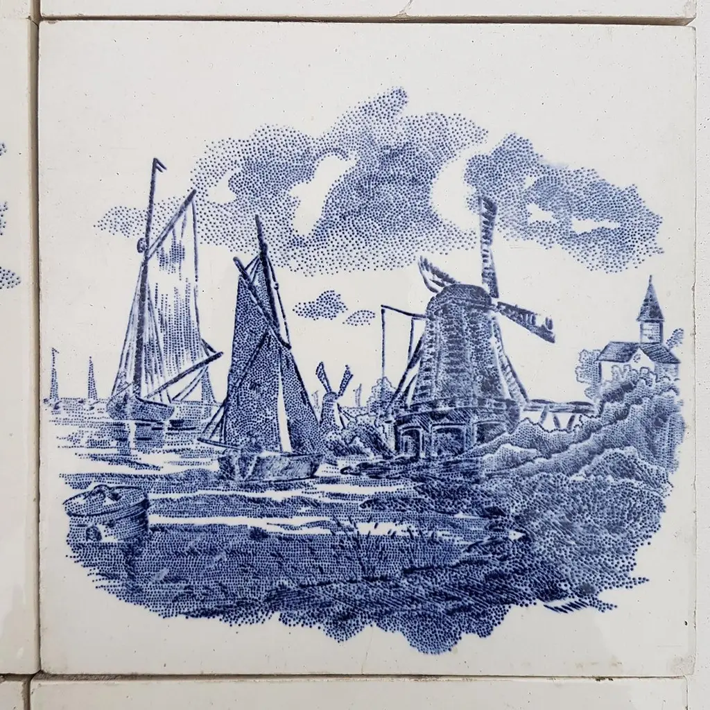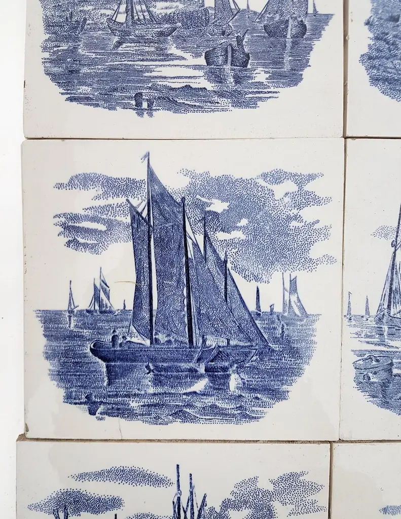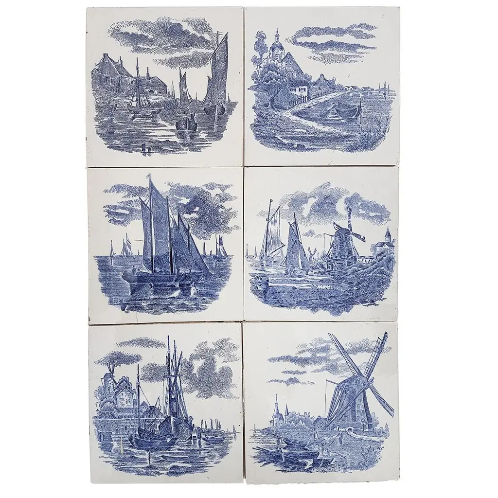 Set Of 6 Of Total 120 Dutch Blue Ceramic Tiles By Gilliot Hemiksen, 1930s