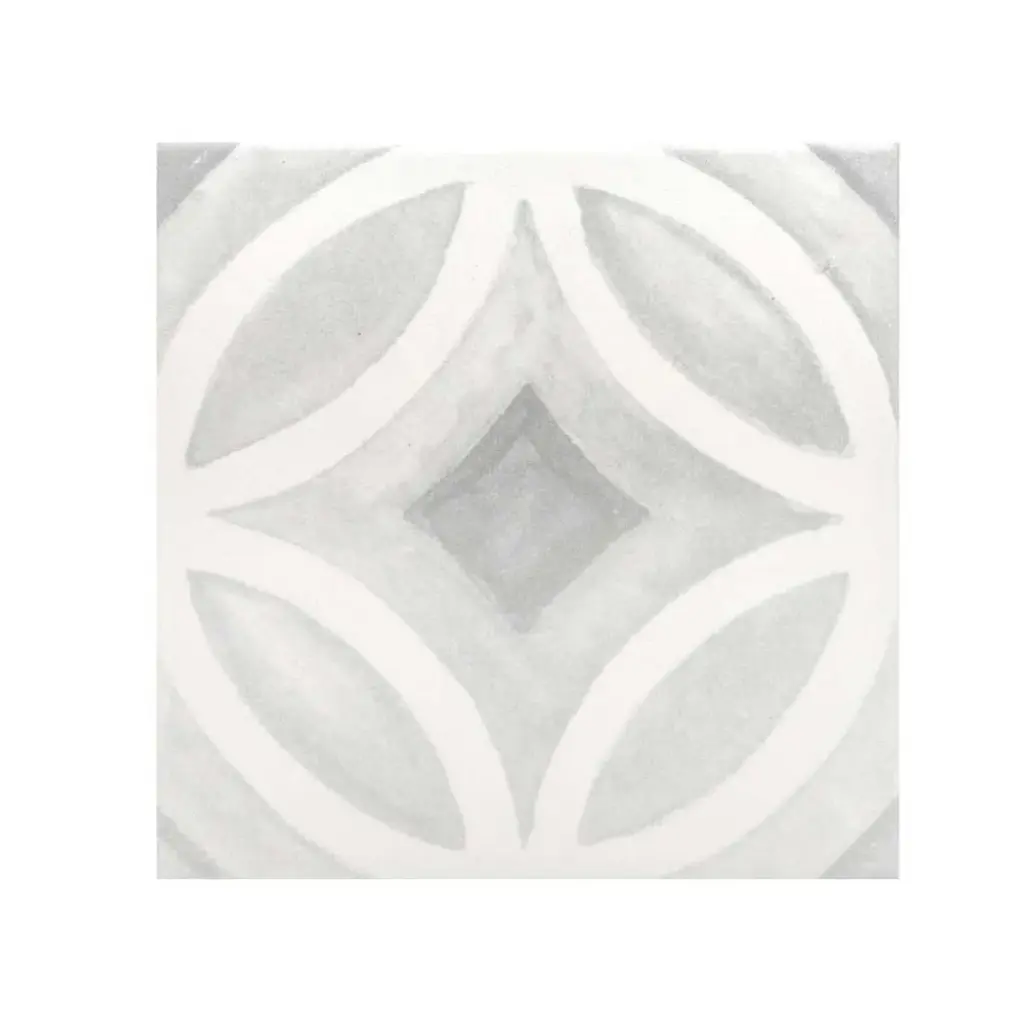 Exquisitely complementing the decor of a bathroom or kitchen in a modern or traditional home with its delicate light blue palette, this splendid set of 25 terrazzo tiles is a superlative showcase of craftsmanship. Named after the Italian word for "sphere", it is marked by a series of blue and white spheres juxtaposed to a light blue backdrop. Each tile is minutely made of a combination of natural raw materials such as cement, marble chips, and volcanic sand from Etna.