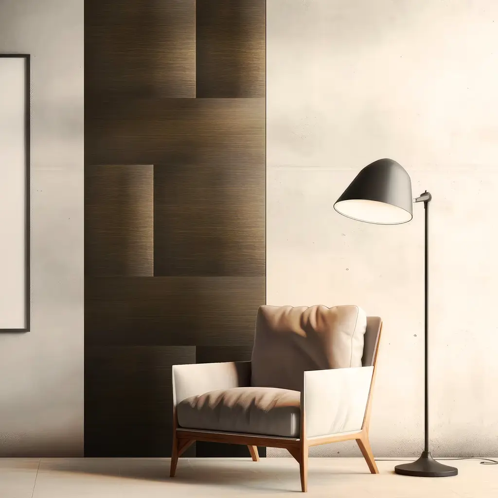 A burnished finish progressively darkening as following a linear single-verse effect lends this four-tile set its distinctive mysterious elegance. The subtle variations in every tile's shades and details are precious traces of the minute artisan crafting process behind them. Please consult the Concierge for more finishing options and size variants. The price listed is for the set of 4 tiles. Product images show the different compositions that can be made. Contact the concierge for more information and details.