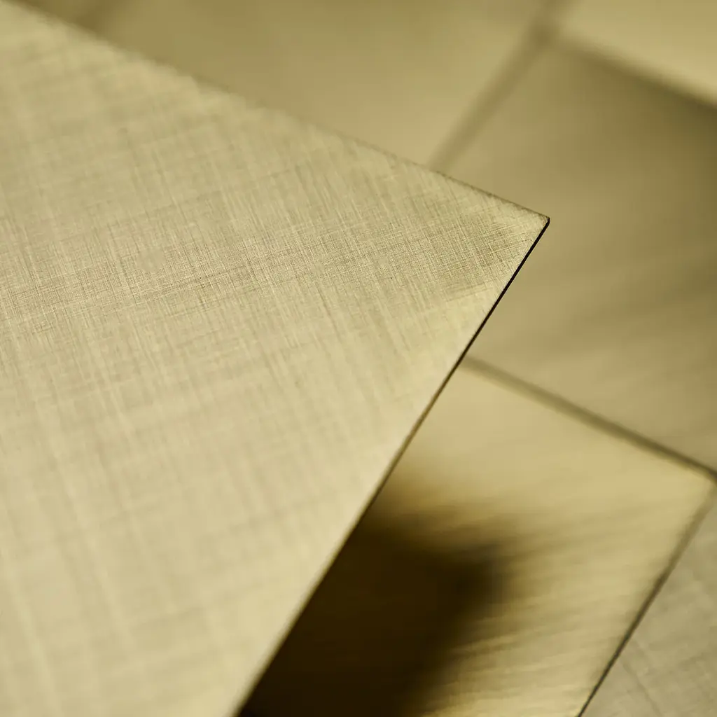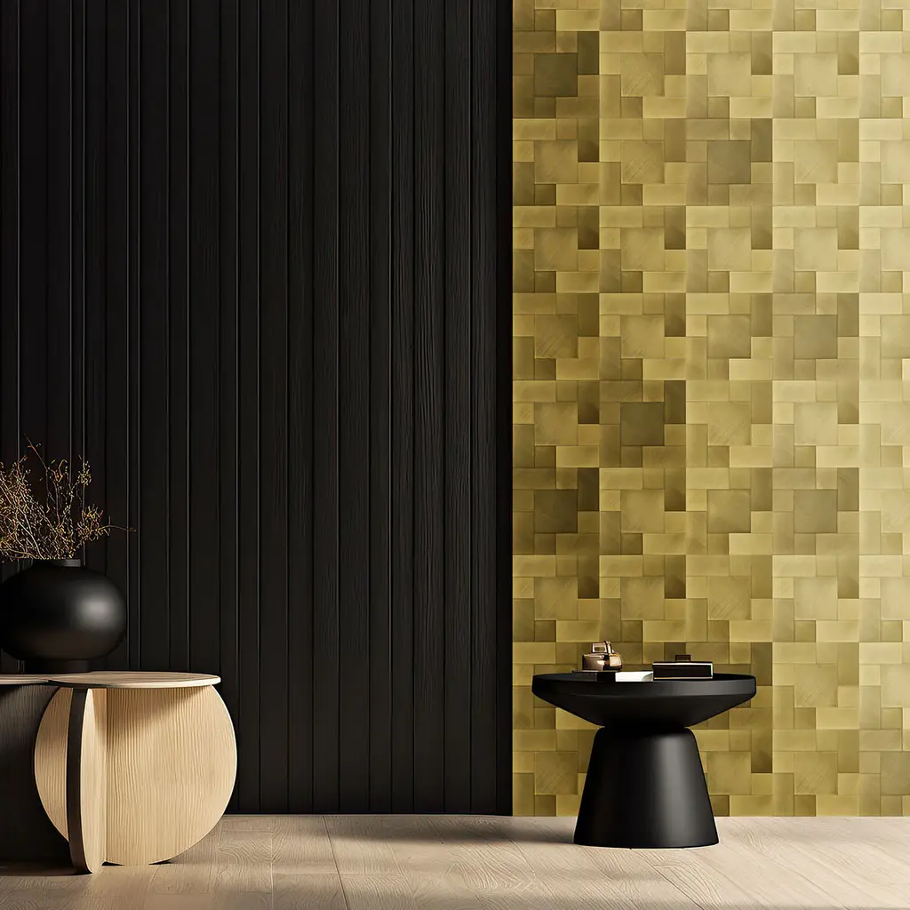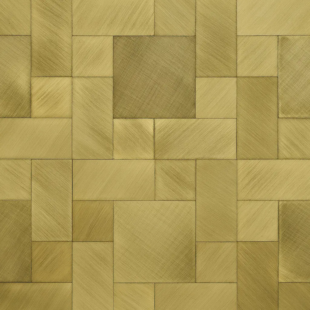 Part of the glamorous MetalSkin Collection, this nine-tile brass set stands out for its seductive and warm sheen sure to elevate refined modern interiors. A painstaking artisan process of Venetian tradition is behind every tile, which surprises with dynamic lighting effects enhanced by the two different orientations their satin metallic finish flaunts. The price listed is for the set of 9 tiles. Product images show the different compositions that can be made. Contact the concierge for more information and details.