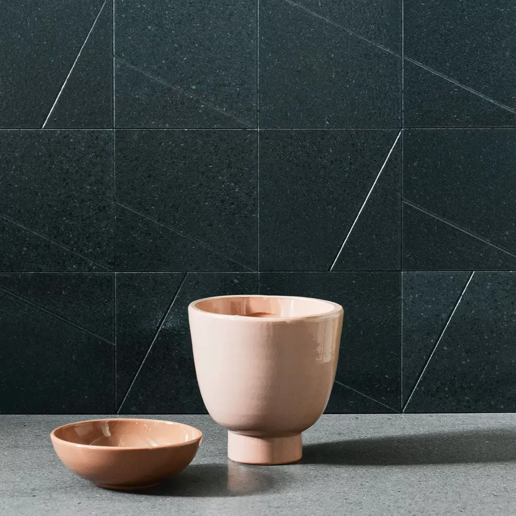 Capable of withstanding impacts and temperature jumps, this set of 25 tiles fashioned of Etna volcano stone was handcrafted in Caltagirone by masters Nicolò and Fausto Parrinello. The linear etchings decorating the tiles explain the set's name "Vie" - the Italian for roads - and give birth to a pattern that is as dynamic as it is elegant. Perfect for floor and wall coverings, alike.