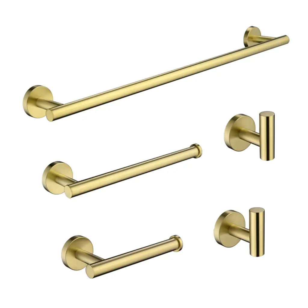 Enhance your bathroom with this 3-piece hardware set, which includes a towel bar, toilet paper holder, and robe hook. Made of rust-resistant materials, it combines modern design with practical functionality. This set is perfect for bathrooms, kitchens, laundry rooms, and more. All mounting hardware is included for easy installation.