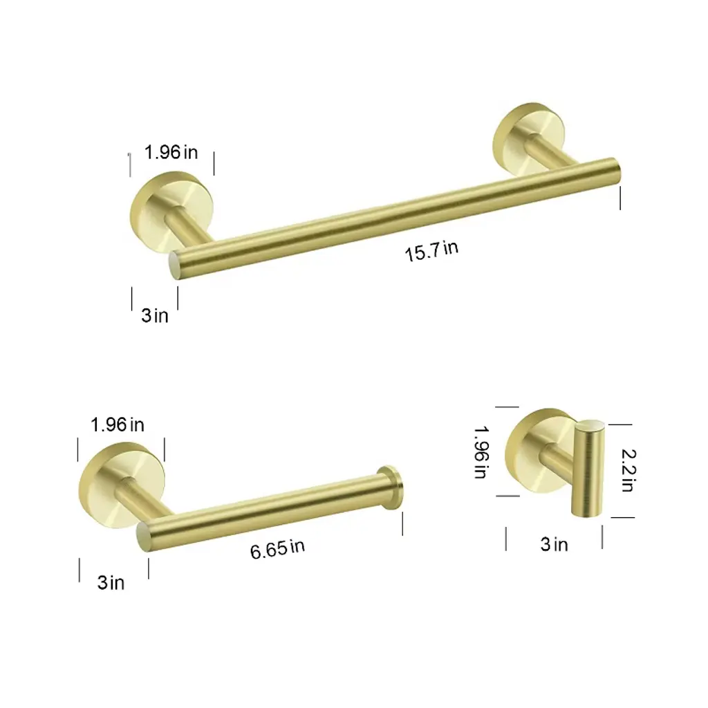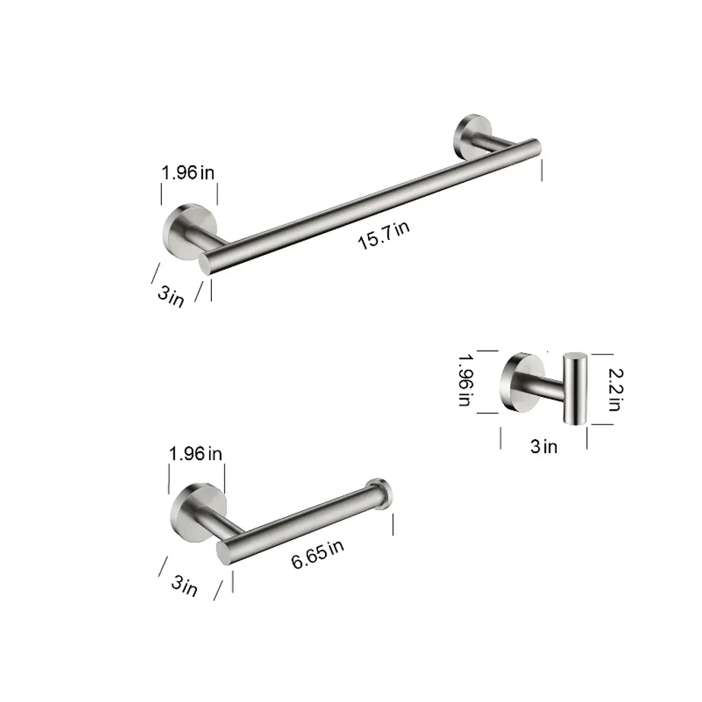 3-piece Bathroom Hardware Set Towel Bar, Toilet Paper Holder, Robe Hook Stainless Steel Modern Design
