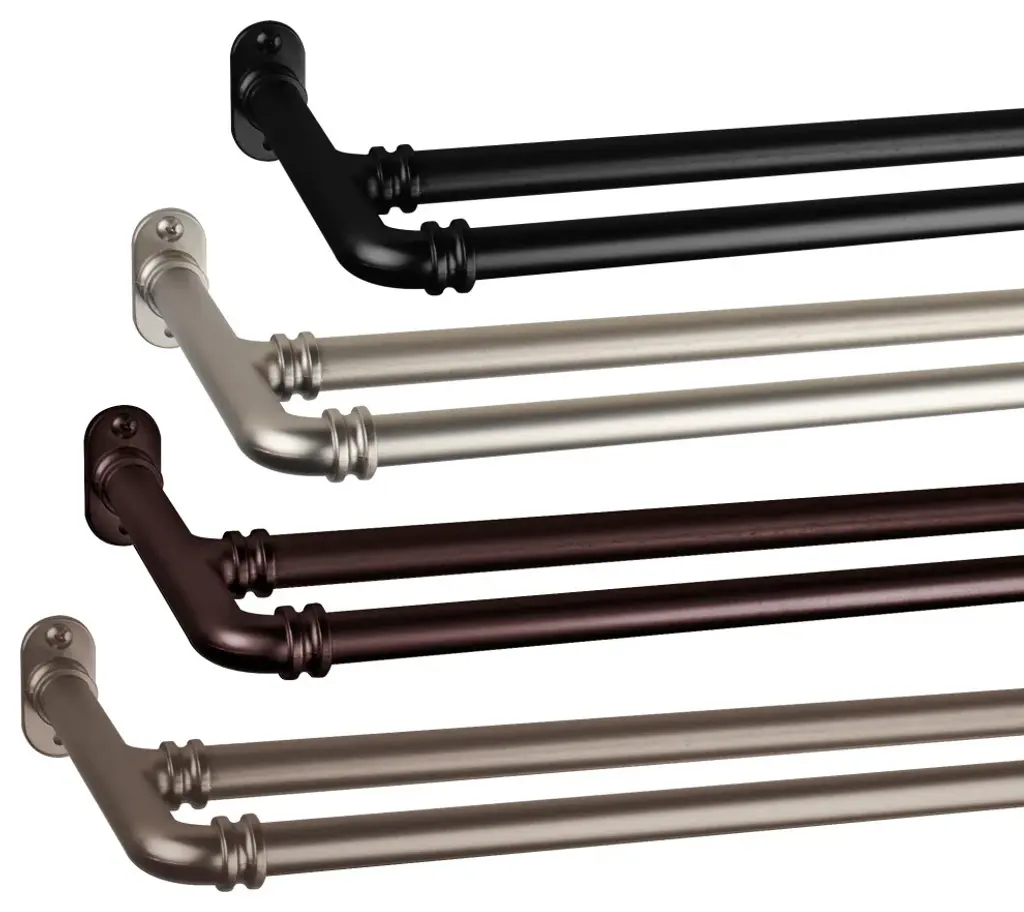 This 5/8" double blackout curtain rod with industrial design will add a modern aesthetic to any spaceEach blackout curtain rod adjustable from 48-84 inchesPerfect for light or medium weight curtainIncludes: Two telescoping curtain rod, screws, drywall anchors, and installation instructionsAnchor can be mounted on the wall or ceilingProjection: 6 inchesClearance: 3 inches