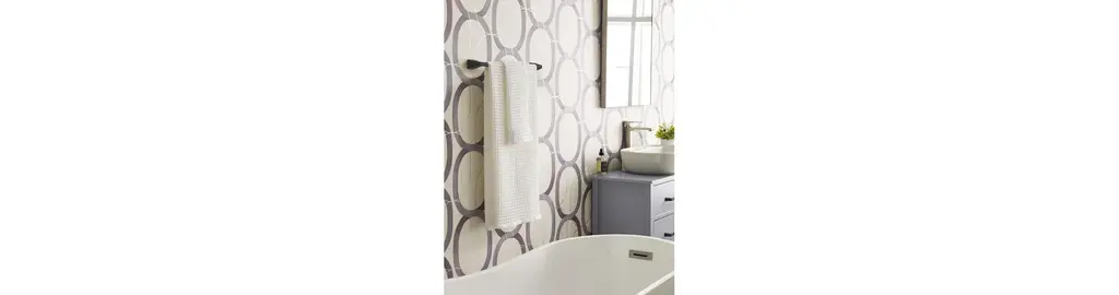 The Amerock BH36003MB Blackrock 18 in (457 mm) Towel Bar is finished in Matte Black. Inspired by hard geometric lines, Blackrock's simple shapes make a lasting impression. The backdrop of starred skies and elegant evenings, black can be unmistakably striking. Matte Black adds a simple, yet bold statement to any room. Founded in 1928, Amerock's award-winning home solutions including decorative and functional cabinet hardware, bath accessories, decorative hooks and wall plates have built the company's reputation for chic design accessories that inspire homeowners to express their personal style. Amerock offers a variety of styles and finishes at affordable prices that add the perfect finishing touch to any room.