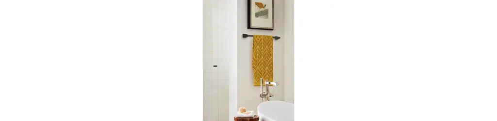 The Amerock BH36004ORB Blackrock 24 in (610 mm) Towel Bar is finished in Oil Rubbed Bronze. Inspired by hard geometric lines, Blackrock's simple shapes make a lasting impression. Adding depth to any space, the rich burnished nature of Oil-Rubbed Bronze sparkles with copper brush marks and embraces the beauty and craft of old-world artistry. Founded in 1928, Amerock's award-winning home solutions including decorative and functional cabinet hardware, bath accessories, decorative hooks and wall plates have built the company's reputation for chic design accessories that inspire homeowners to express their personal style. Amerock offers a variety of styles and finishes at affordable prices that add the perfect finishing touch to any room.