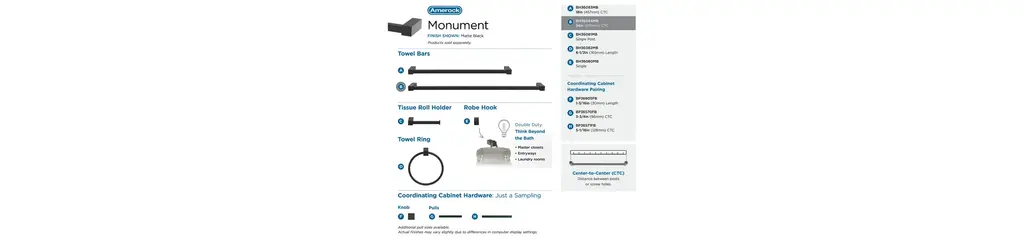 The Amerock BH36084MB Monument 24 in (610 mm) Towel Bar is finished in Matte Black. The modern square design of Monument offers sleek, sophisticated allure with a contemporary European twist, making a bold statement with a refined touch. The backdrop of starred skies and elegant evenings, black can be unmistakably striking. Matte Black adds a simple, yet bold statement to any room. Founded in 1928, Amerock's award-winning home solutions including decorative and functional cabinet hardware, bath accessories, decorative hooks and wall plates have built the company's reputation for chic design accessories that inspire homeowners to express their personal style. Amerock offers a variety of styles and finishes at affordable prices that add the perfect finishing touch to any room.