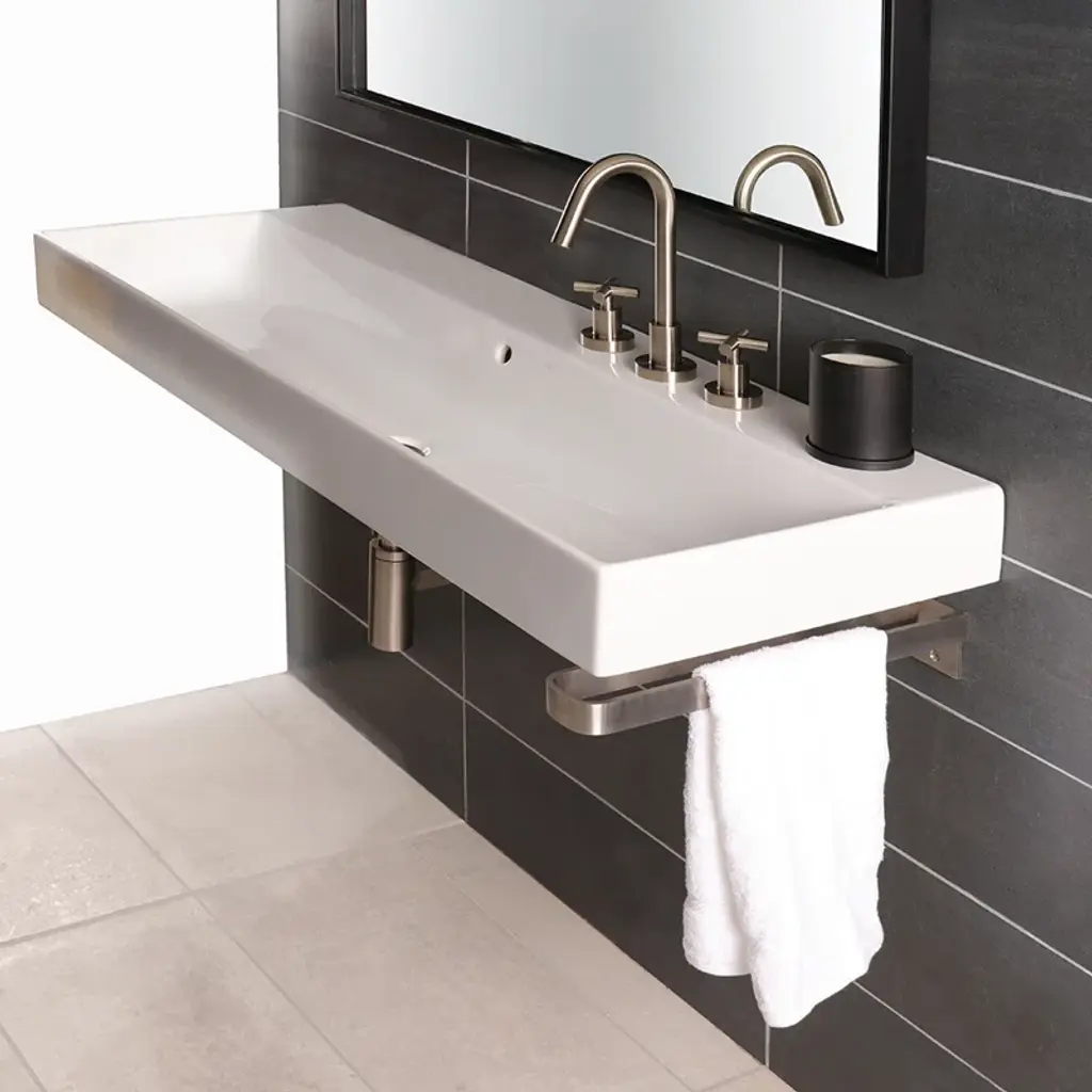 Constructed from durable, high-quality metal, this towel bar is built to withstand everyday use and maintain its stylish appearance for years to come. The bar's smooth, rust-resistant finish seamlessly complements any bathroom décor, adding a touch of elegance and sophistication to your space. Declutter your bathroom countertop and create a spa-like experience with the Aqua Towel Bar Collection. This innovative range of wall-mounted towel bars is specially designed to fit directly below your wall-mounted sink, maximizing space and adding a touch of modern elegance.
