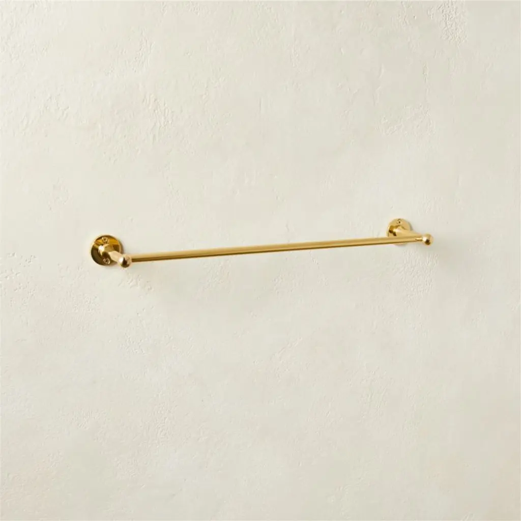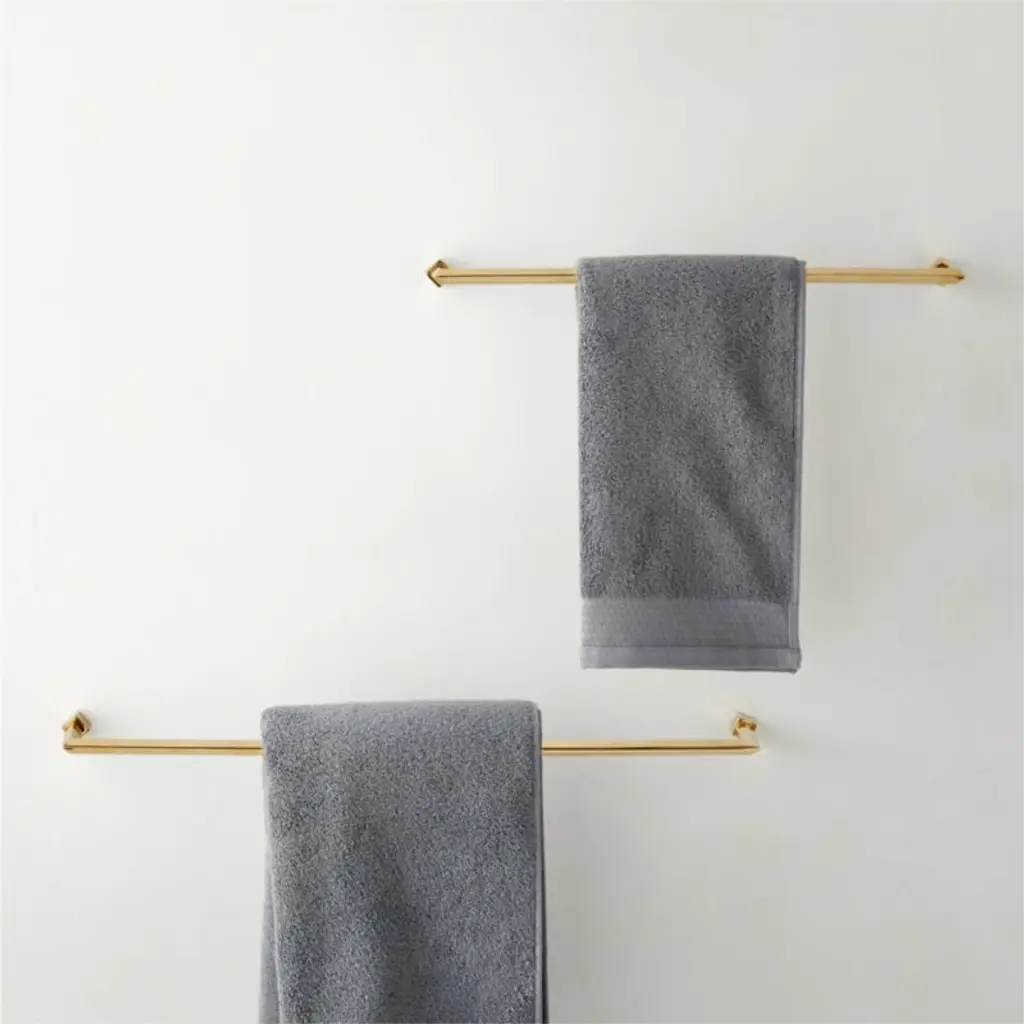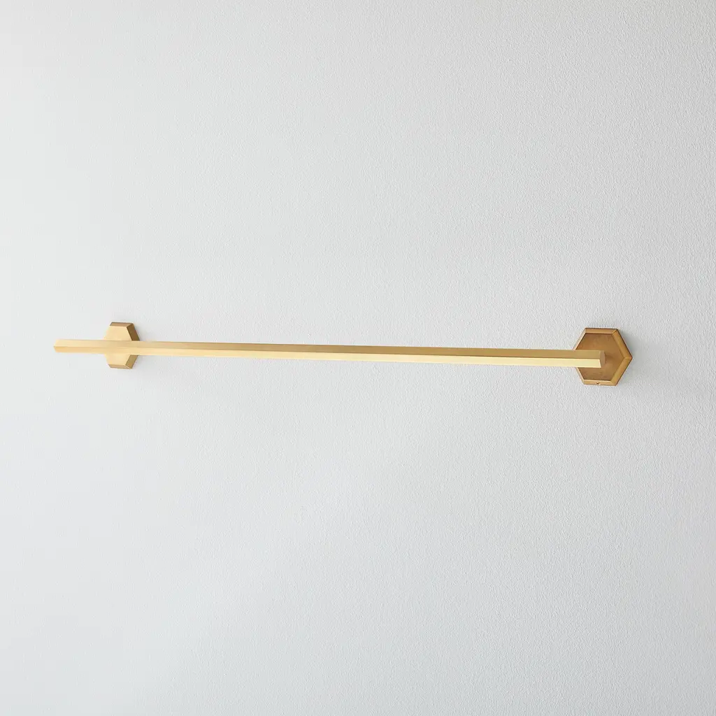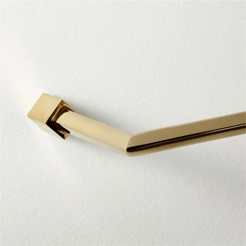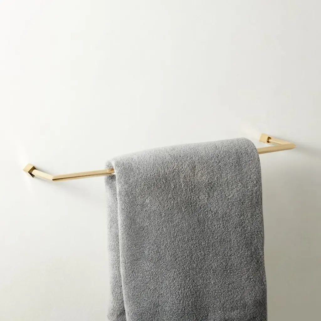 Designed by Barcelona-based Mermelada Estudio, unique beveled towel bar brings sharp lines and a touch of modern luxury to the bath. Solid brass is unlacquered for a living finish that will patina beautifully over time. Bathroom collection also includes wall-mounted hook, towel ring and toilet paper holder. CB2 exclusive.