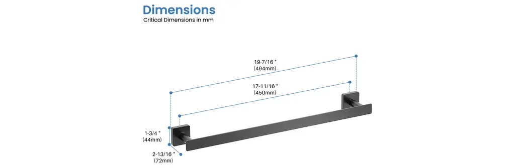 Blaze 18 Inch Bathroom Towel Bar, Matte Black