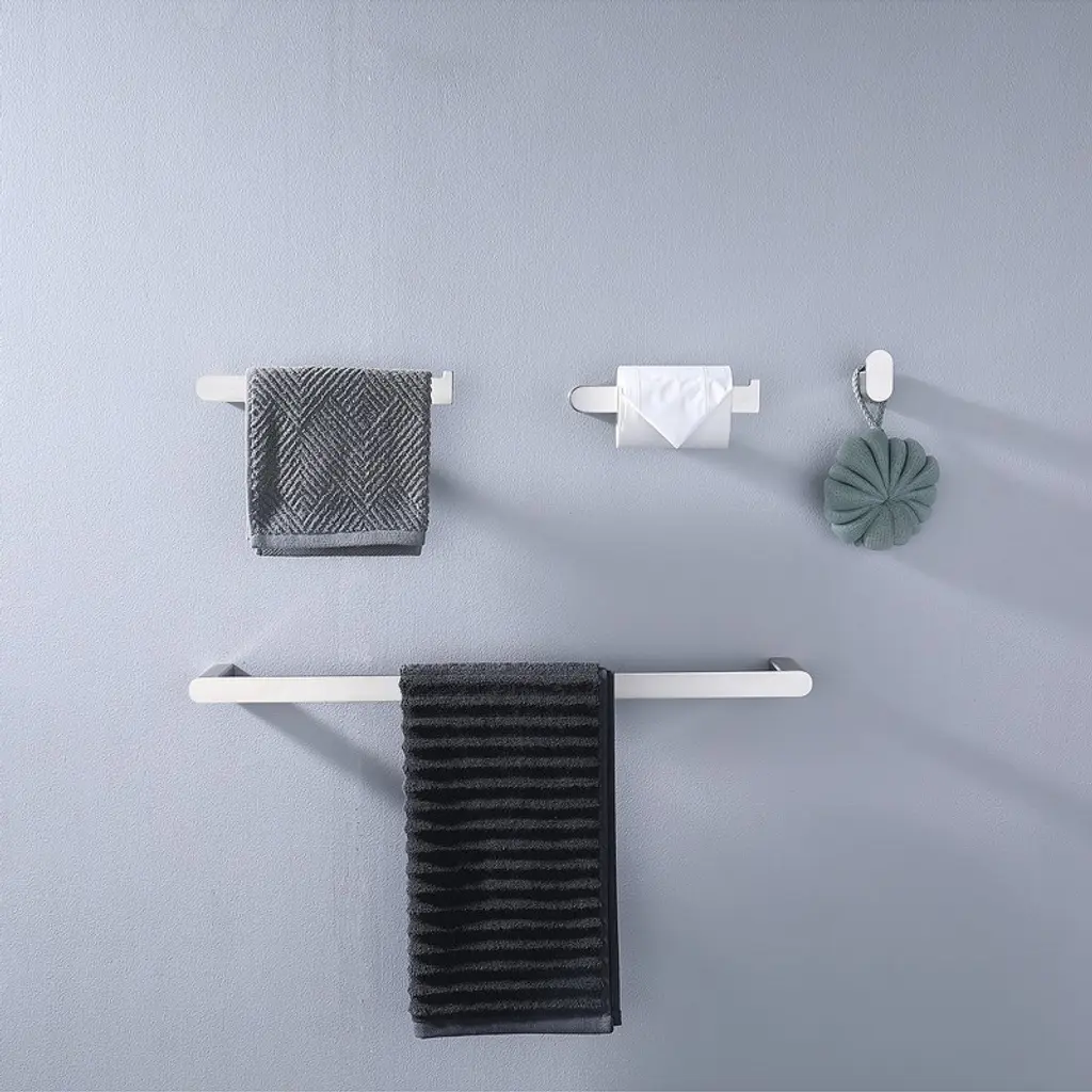 Upgrade your bathroom with this modern brushed nickel hardware set, including a robe hook, towel rail bar, rack, shelf, and tissue paper holder. Crafted from premium stainless steel, this set offers long-lasting durability and a sleek matte finish that resists rust and corrosion. Designed to fit smoothly into contemporary bathrooms, it combines both style and functionality for an organized, high-end look.