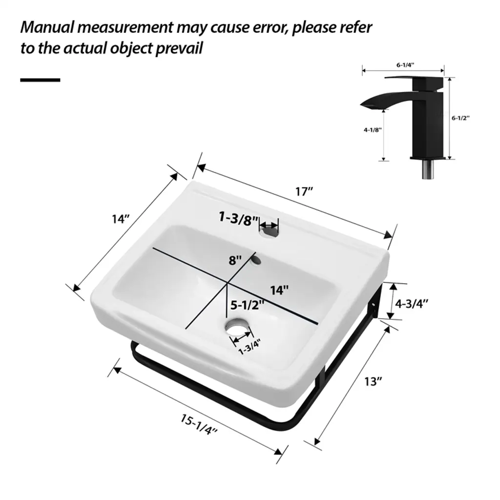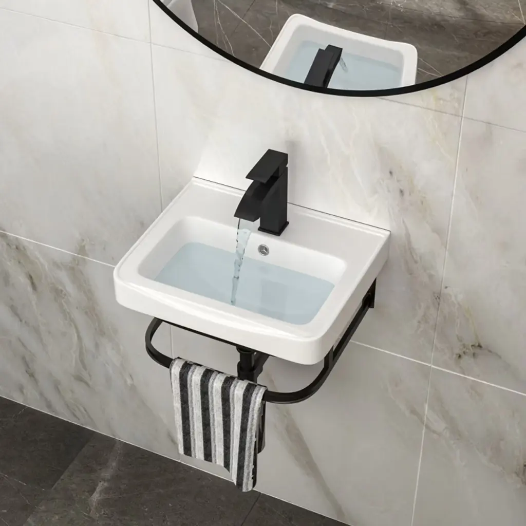 Dexmalle Wall-mounted Rectangular Sink With Black Towel Bar & Overflow