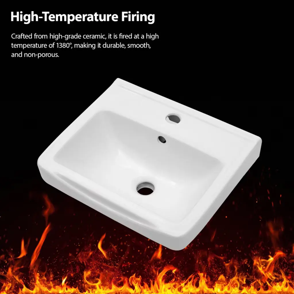 This rectangular ceramic sink utilizes a floating installation system to maximize floor space, combining modern aesthetics with functional suspension engineering. Made from premium ceramic, this sink is highly resistant to stains, acids, and scratches. Its polished surface ensures long-lasting beauty, making it ideal for high-traffic areas like homes, restaurants, offices, and schools.