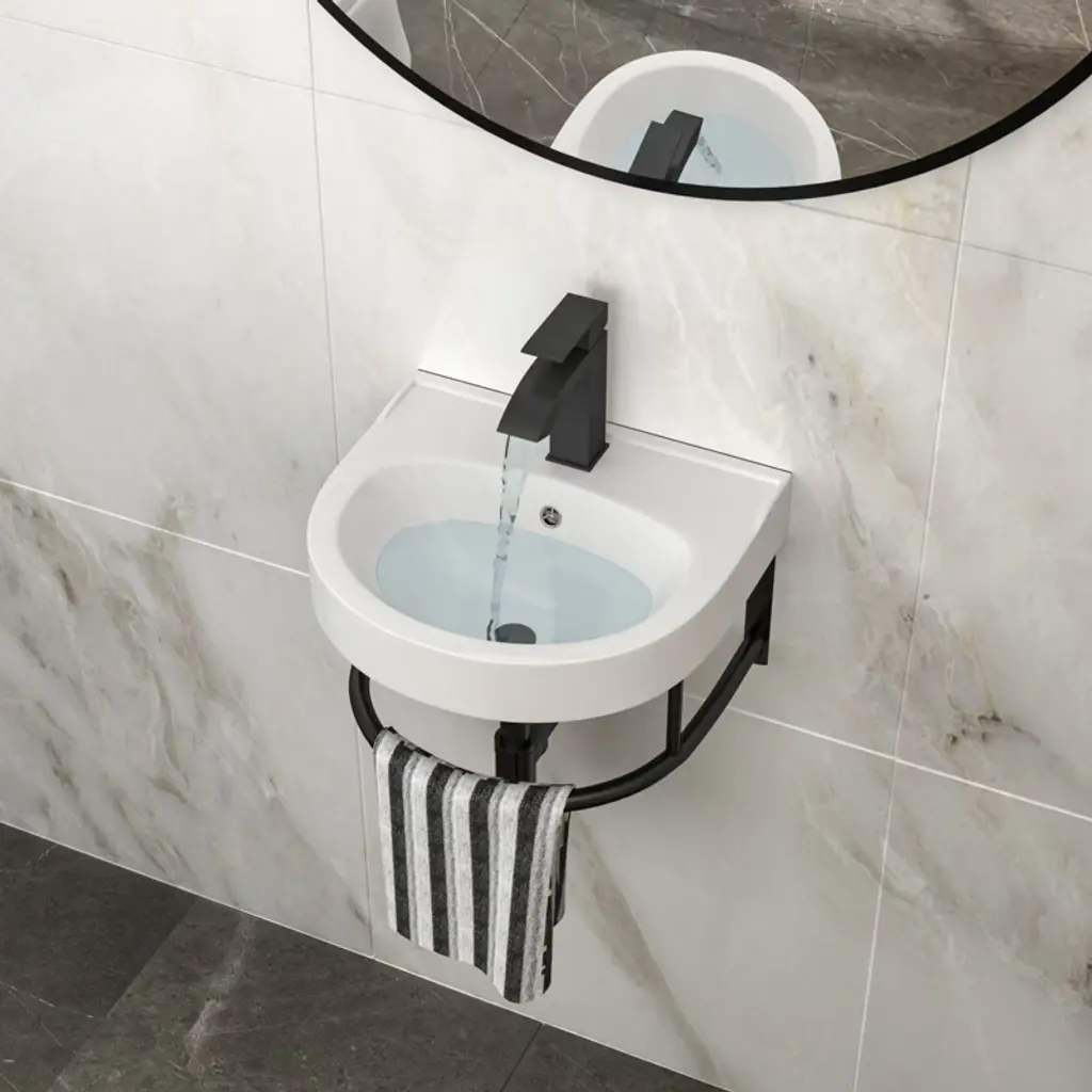 Dexmalle Wall-mounted Sink ,With Black Towel Bar & Black Faucet