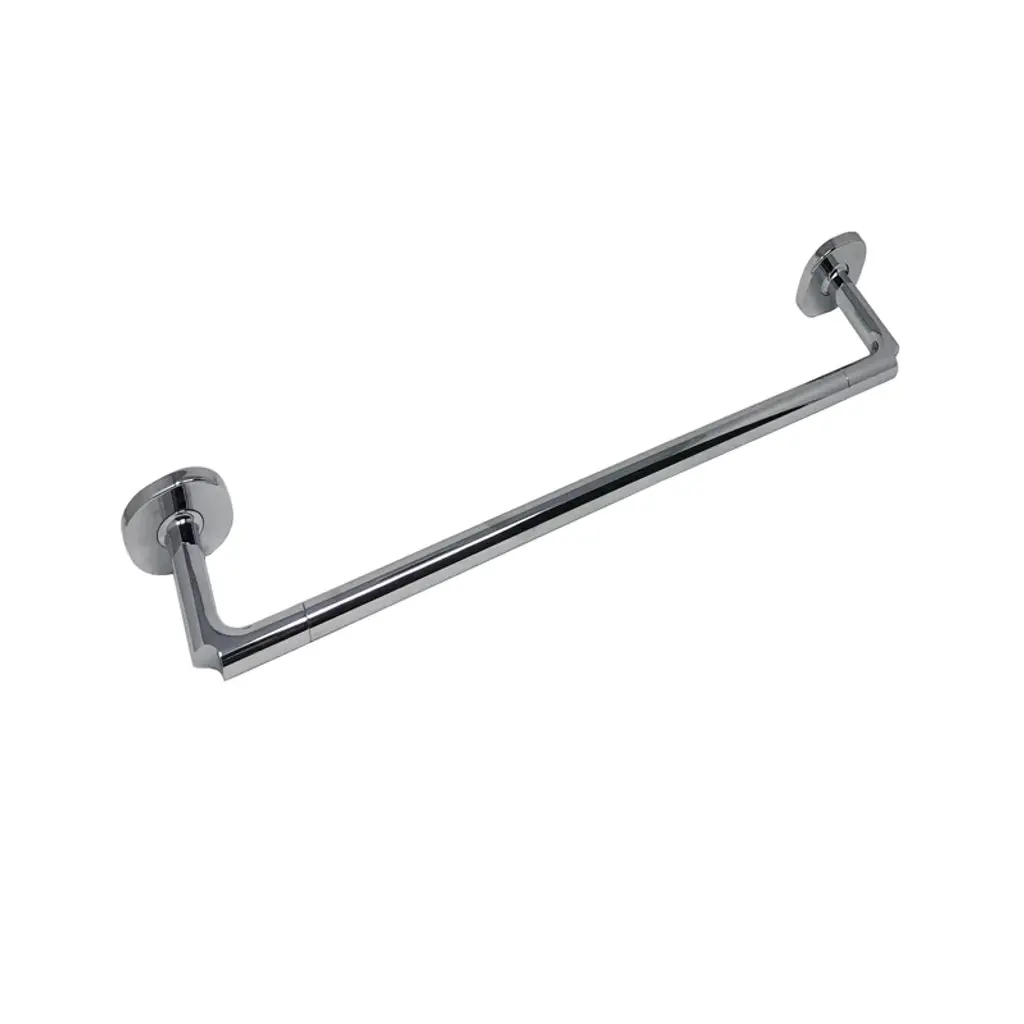 Ellepi WS bath collections towel bar. Ellepi is a collection of bathroom accessories characterized by a unique recognizable detail: a slight notch on the corner of the pipe. A break to the straight line by highlighting the change of direction and emphasizing the fold. Finishes play an important role. This series is available in chrome finish, mat white, and black. and unique version presents a light contrast reinforcing its character: brushed nickel with a chromed notch.