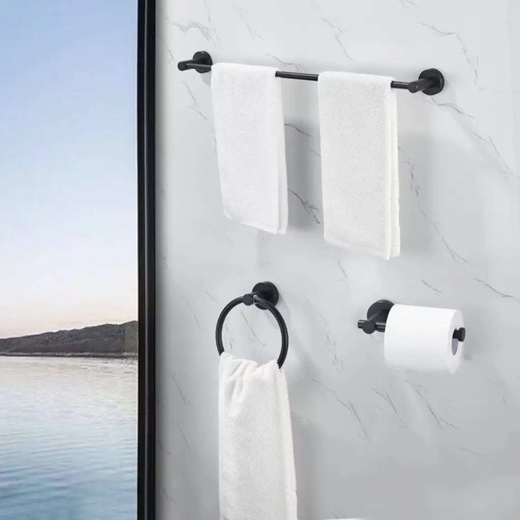 Upgrade your bathroom with the Gulches 3 PCS Bathroom Hardware Set. This stylish set includes an adjustable towel bar (16-27 inches), a 7-inch toilet paper holder, and a towel ring, all crafted from thick space aluminum for durability. The matte black finish adds a modern touch, while the waterproof design ensures longevity. Perfect for various settings, this set is easy to install with included hardware and instructions.