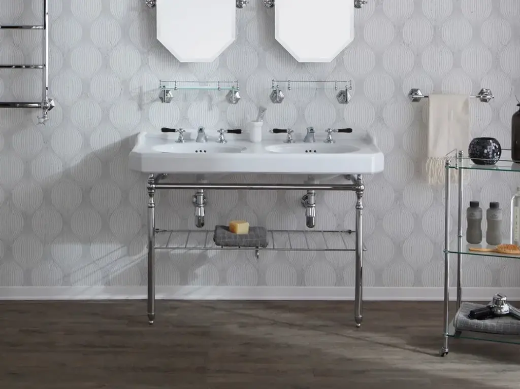 IMPERO is a chromed brass frame with towel rail and glass shelf for wash basin. Available in two sizes.Olympia Ceramica created “Impero Style”, a concept that responds to the request of timeless classic shapes, combined with modern values of functionality and elegance.The perfect harmony among ceramics, metals and wood allows to create different compositions made with different materials, that can be adapted to any demands, always keeping Class, Elegance and Luxury as main features. Details for a luxury and timeless Bathroom.