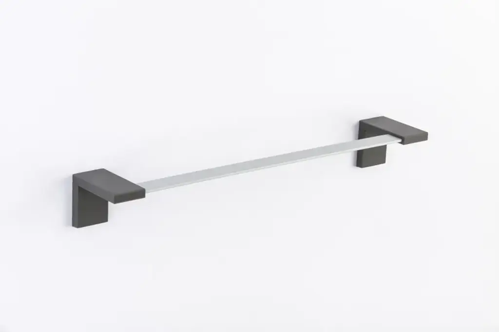 The hand towel holder Inlinea is in anodized aluminium and polyurethane gel.geelli proposes exciting functional items that are fun and practical to use. By exploiting the natural adhesive properties of polyurethane gel and its technical and sensorial characteristics, they combine the pleasure of touch, sight and coloured transparency to lend a personal touch to any room. INLINEA - Toilet brush holder, shelf, hand towel holder and hanger in an elegant combinationMaterial: polyurethane gel and anodized aluminum/stainless steel (in the photo it's stainless steel)