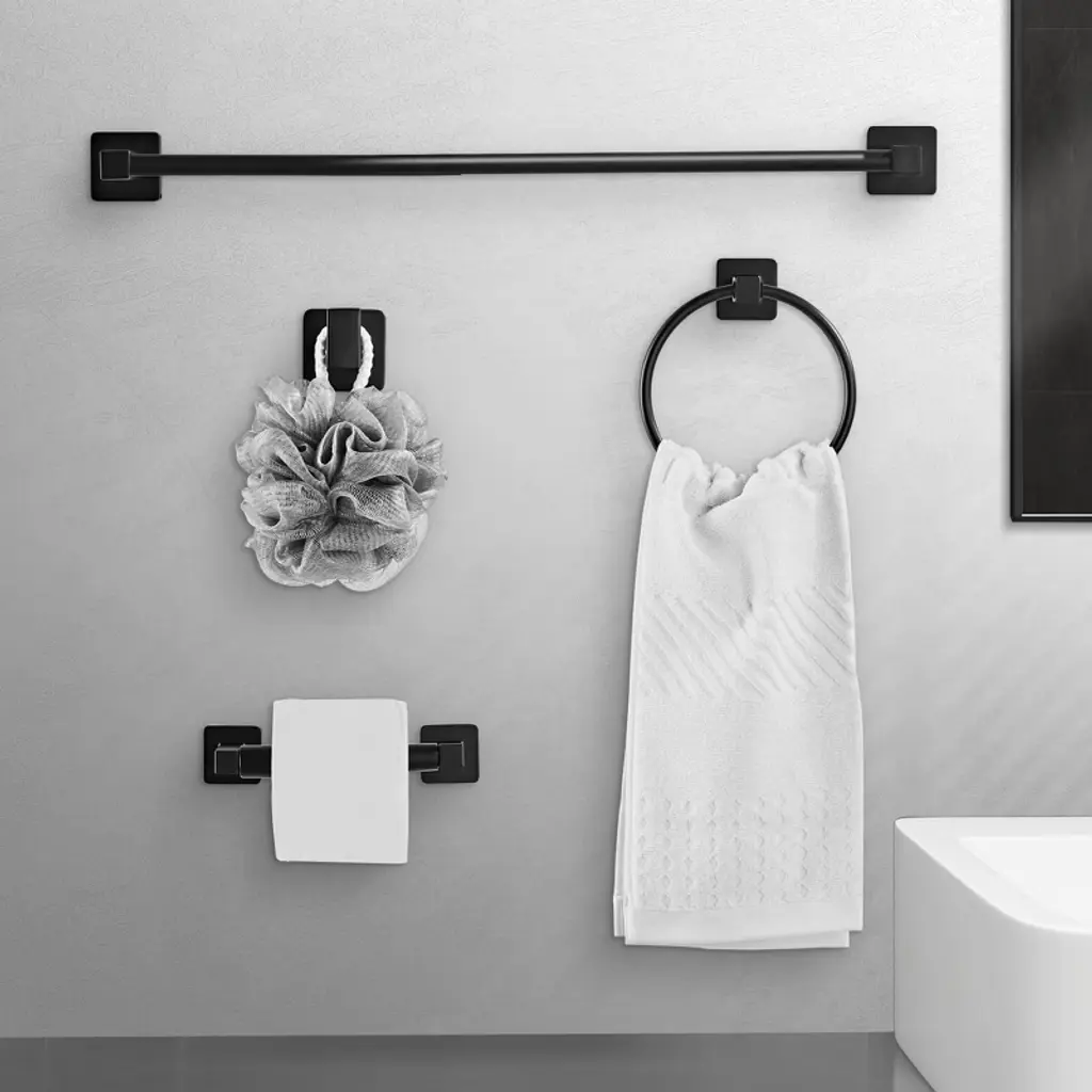 Itopfox Matte Black Bathroom Hardware Set, 4-piece Stainless Steel Wall Mounted Towel Bar, Ring, Hooks & Toilet Paper Holder