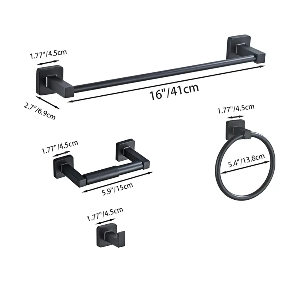 Upgrade your bathroom with this 4 - piece matte black bathroom hardware set. Crafted from high - quality 304 stainless steel, it's corrosion - resistant, heavy - duty, and rustproof. The modern design features clean lines and a sturdy construction, with a matte black surface that can seamlessly blend with any home decor style. This set includes a towel bar, towel ring, toilet paper roll holder, and wall hook. You can choose between a 16 - inch towel bar or opt for the separately - sold 23.6 - inch version. Installation is a breeze with the detailed instructions provided. It's an all - in - one solution that offers a perfect match and great cost - effectiveness. Cleaning is also easy; just wipe it with a soft cotton cloth. Ideal for any bathroom, it brings both functionality and style to your daily life.