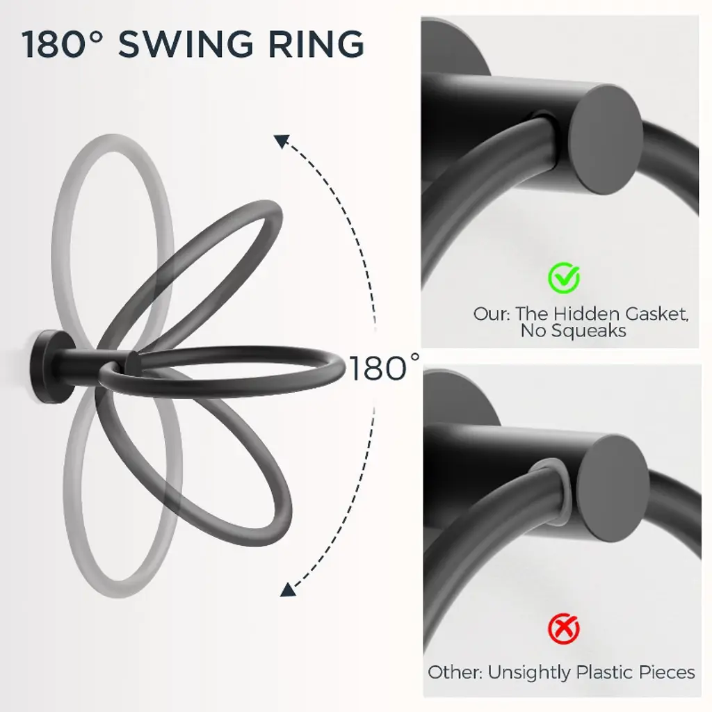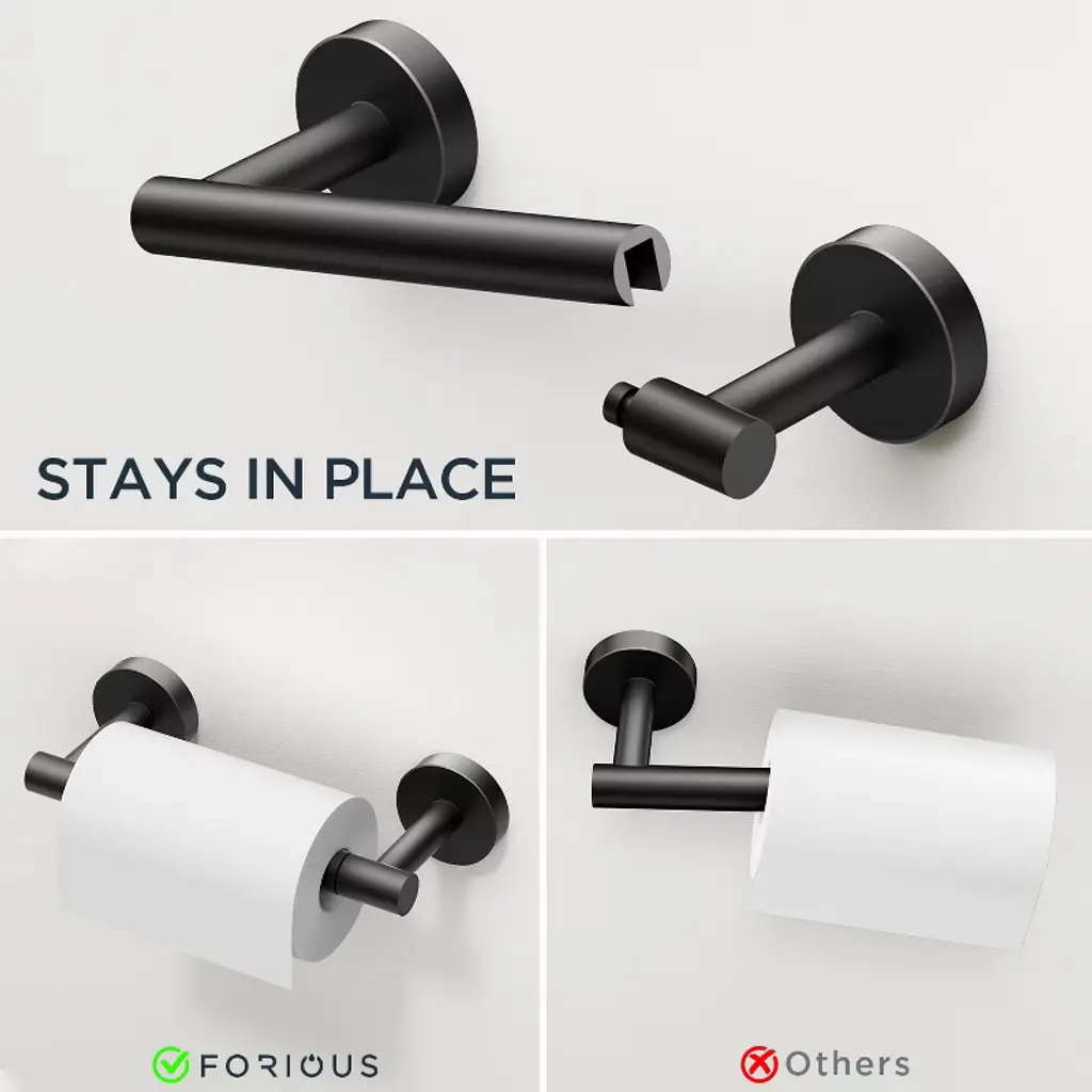 Itopfox Modern Bathroom Hardware Set, Stainless Steel Towel Bar With Ring, Toilet Paper Holder & Hooks, Wall Mounted Matte Black