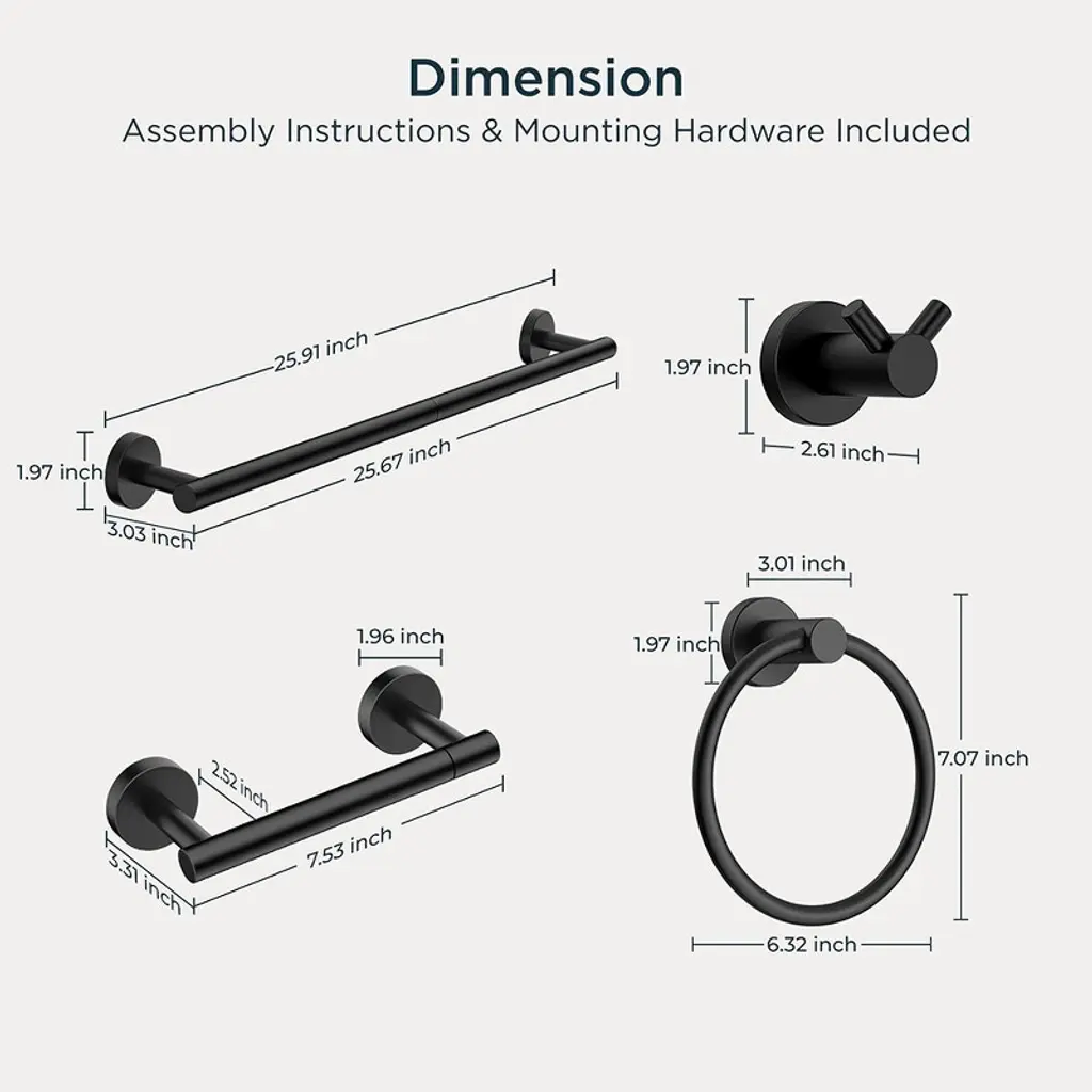 Upgrade your bathroom with this 4 - piece bathroom hardware accessories set. Crafted from premium SUS304 thickened stainless steel, it's highly resistant to rust, stains, fingerprints, and scratches, ensuring long - lasting use. The set includes a 24 - inch towel bar, a rotating towel ring, a toilet paper holder with a unique rotating double - column design for stability, and strong double - hook towel hooks. The towel ring can rotate 180°, and the 24 - inch towel bar is perfect for hanging large towels. With its clean modern lines and multiple finishes, it adds a contemporary touch to master and guest bathrooms. It's also a great fit for motorhomes, powder rooms, and kitchens. Installation is a breeze as all mounting hardware, a paper template for hole spacing, drywall anchors, Allen wrench screws, and assembly instructions are included. Transform your space with this practical and stylish set today.