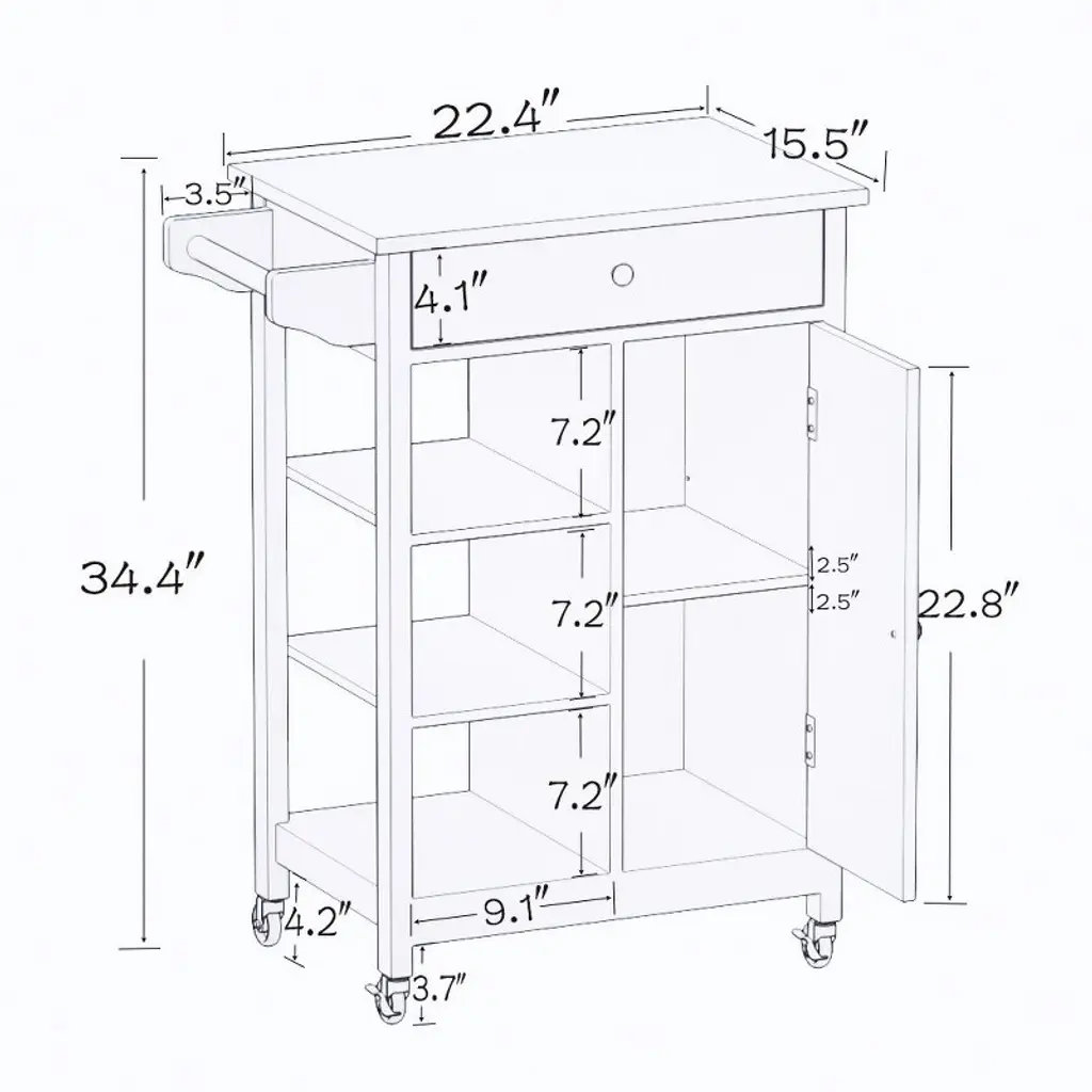 This multifunctional kitchen island cart is designed to provide valuable extra counter space and organizational solutions in your kitchen. The sturdy solid rubberwood top offers a durable surface for food preparation, while the generous kitchen storage below helps keep essentials within reach. Built from high-quality MDF and robust rubberwood, this kitchen cart is constructed to withstand daily use and remain a reliable part of your cooking area for years. Featuring four carts with wheels, two of which are lockable, this mobile rolling kitchen island can be easily moved to wherever it is needed most. The convenient side towel bar provides easy access to towels and also acts as a handle when moving the rolling cart. Simple assembly with all parts and clear instructions included makes this island table for kitchen ready to use quickly.