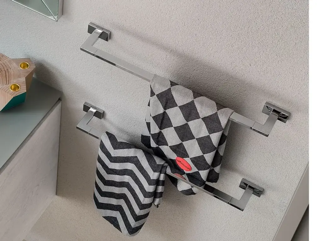 LEA - Towel holderLea, essential functionality. Desire for new geometries with the purity of a rectangular section form , a complete system of accessories that meets with specifi c proposals the needs and functions of bathroom design!The series can be wall-mounted using the glue from the kit to avoid drilling of ceramics or installed with screws and dowels.