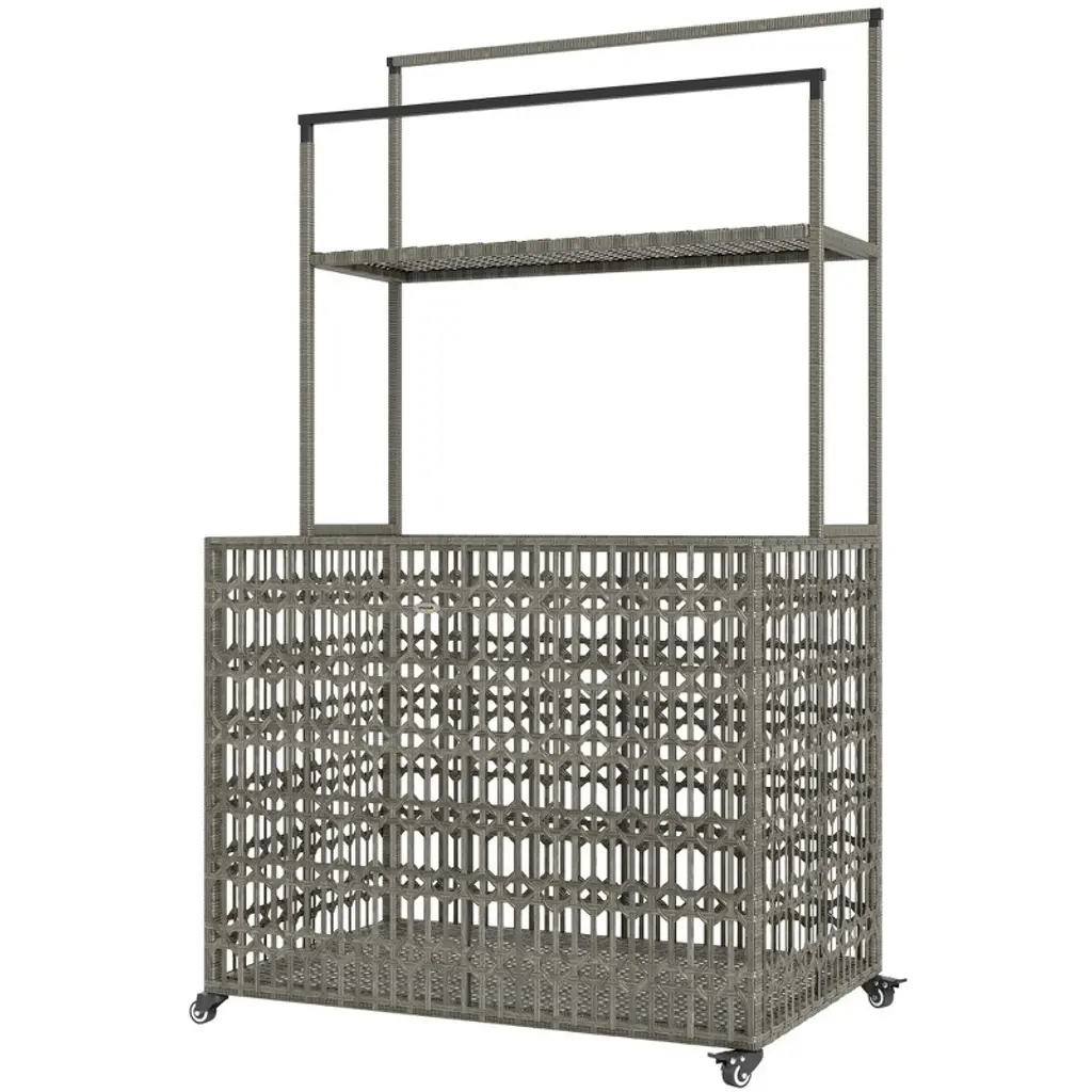 Outsunny Rattan Pool Float Storage Organizer, Wheeled Pool Caddy With Basket Shelf Towel Bars, Mixed-gray