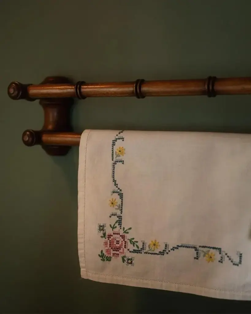 The prettiest spot to hang your hand towels, our handcrafted faux-bamboo towel rail calls to mind a beautiful antique bathroom accessory. Installation: Metal loop attachments on the rear. Care Instructions: