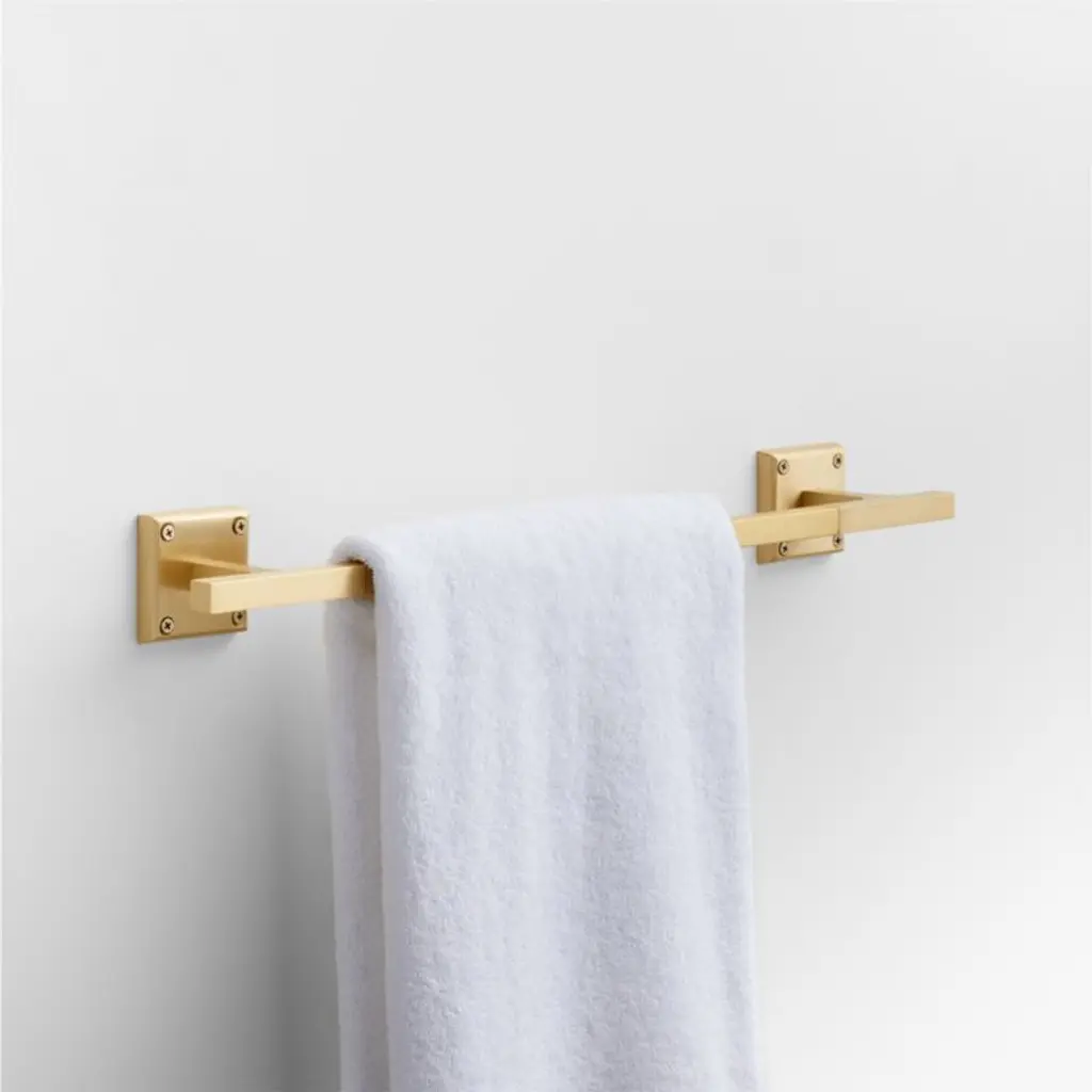 Sometimes it's the small things that pull a room together. That's why we've designed a hardware collection with modern silhouettes, clean lines and a touch of tradition to give your bathroom that perfect finishing touch. Rounded corners and smoothed edges soften the minimalist design of the square towel bar and wall plates made of brushed brass. The 18-inch towel bar mounts easily to the wall with included hardware.